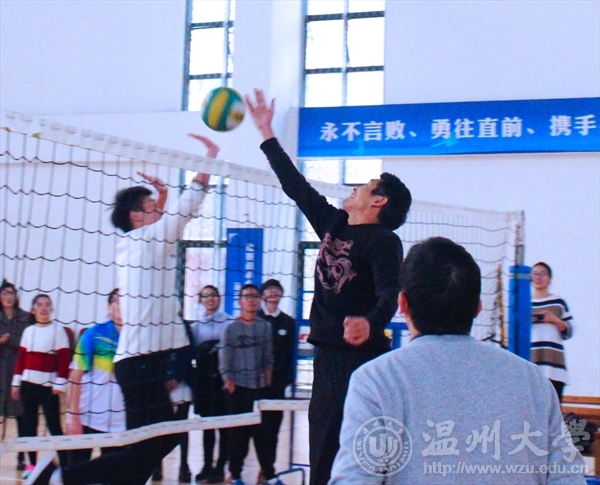 师生用健康阳光的师生趣味排球赛迎接即将到来的2017年,凝聚师生人心。