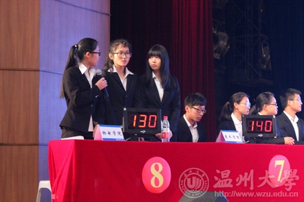 本次活动自本学期九月份启动以来,历时两个多月,主要在本学期开设思想政治理论课的全校3000多名大二学生中进行选拔,经历了初赛、复赛,最后全校15个学院各产生了一支代表队进入决赛(每支代表队4名队员,其中包括一名候补队员)。决赛分南校区(8支代表队)、北校区(7支代表队)共2场,时间分别是下午1:00-3:00和3:30-5:30。决赛内容丰富、形式多样、特色突出。试题涉及鸦片战争以来中国近现代革命、建设和改革的历史知识、涉及马克思主义中国化的历史进程和理论成果,也涉及党的十八届四中、五中、六中全会的精神和时事政治,还包含了温州地方文化特色等试题;竞赛形式多样,包括图片题、视频题、文字材料题,以及演唱红色歌曲、朗诵爱国诗篇等。