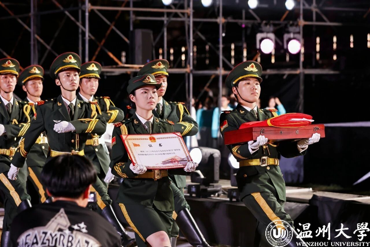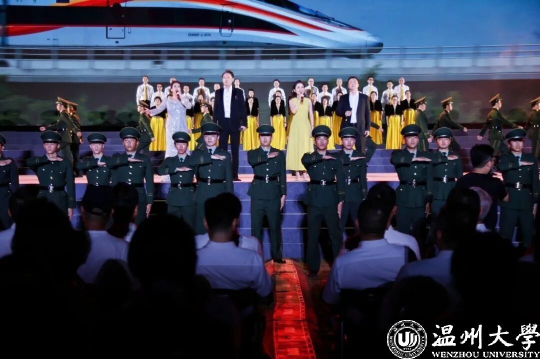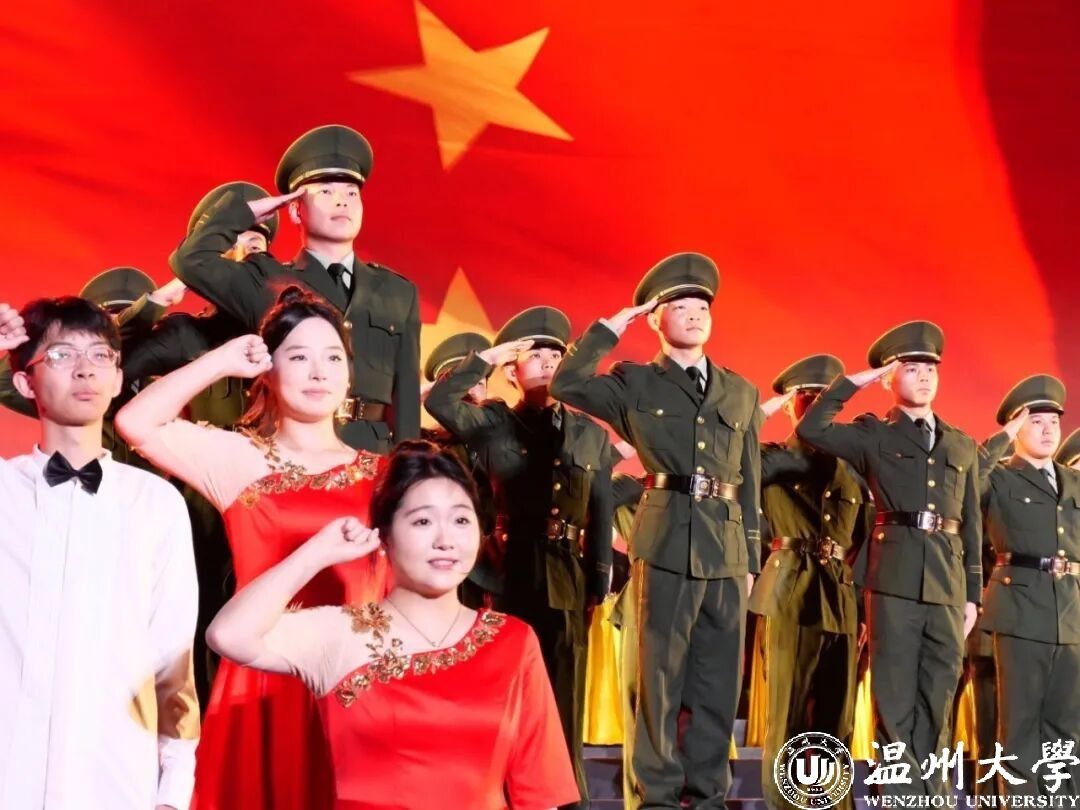 当九三阅兵仪式上天地英雄气的磅礴交响仍在回荡,温大师生用歌声诠释家国情怀。大合唱《保卫黄河》以排山倒海之势,唱响中华民族不屈不挠的气节;高亢嘹亮的唢呐独奏《东方红》,奏响对中国共产党的深情赞颂;《祖国不会忘记》由退役大学生、国产传媒 校友合唱团与“瓯乐”大学生合唱团共同演绎,以深情的旋律向无名英雄们表达了最崇高的敬意。