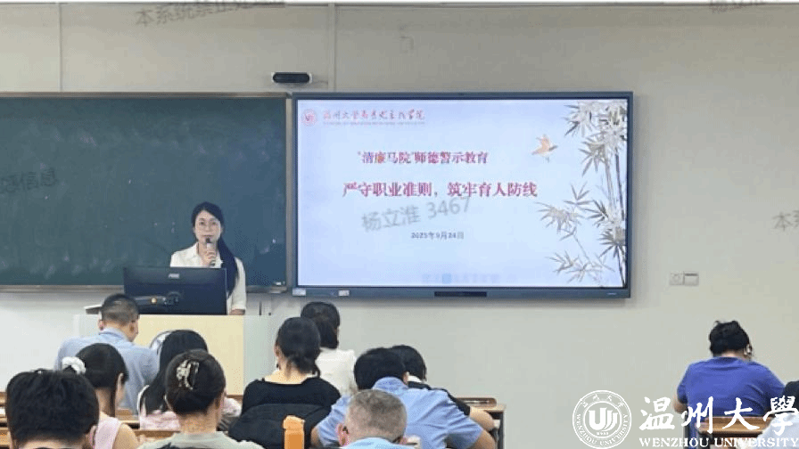 党委副书记吴冬冬开展了“清廉马院”师德警示教育,深入解读了涉及师德师风和廉政建设方面的警示案例,并进行案例剖析。全体教职工要以案为镜、以案明纪,始终将“立德树人”作为根本任务,坚守师德底线,营造风清气正的学院环境。