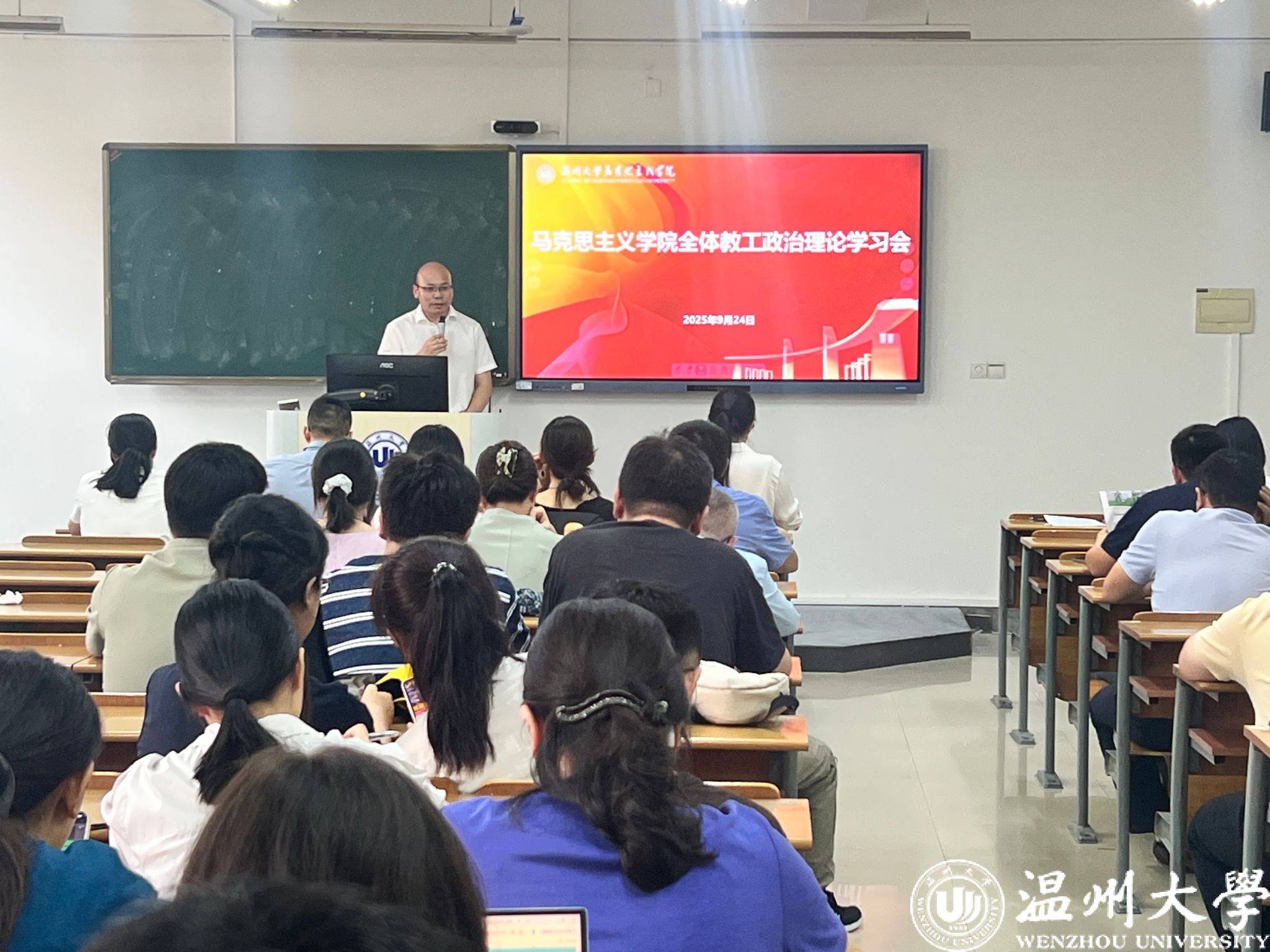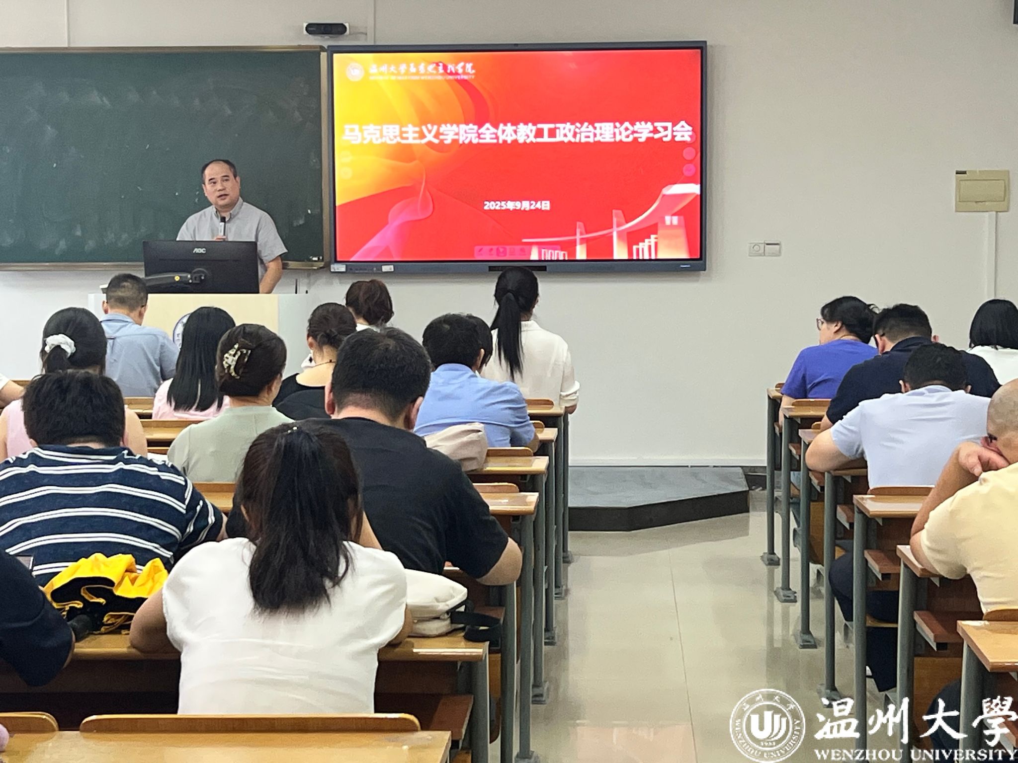 党委书记杨立淮就近期理论学习重点内容进行了强调和部署,学习习近平总书记关于深入贯彻中央八项规定精神学习教育的重要指示精神,习近平总书记关于统计工作重要讲话重要指示批示精神,习近平勉励全国特岗教师代表的回信精神,《习近平谈治国理政》(第五卷)等,引导教职工加强理论学习,进一步学深悟透习近平新时代中国特色社会主义思想,努力提升政治理论素养和思想道德水平,在教学科研中实现学用相长。