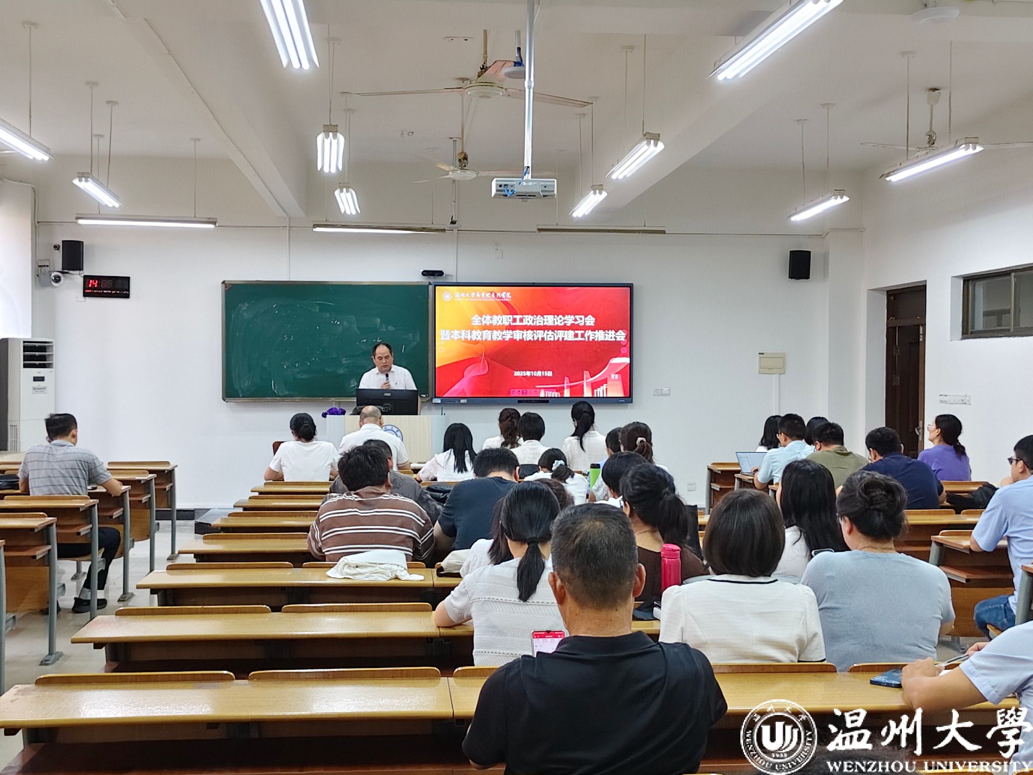 2025年10月15日下午,国产传媒 在北校区4号楼306教室召开全体教职工政治理论学习暨本科教育教学审核评估推进会。学院领导班子成员、全体教职工参加会议,学院党委书记杨立淮主持会议。