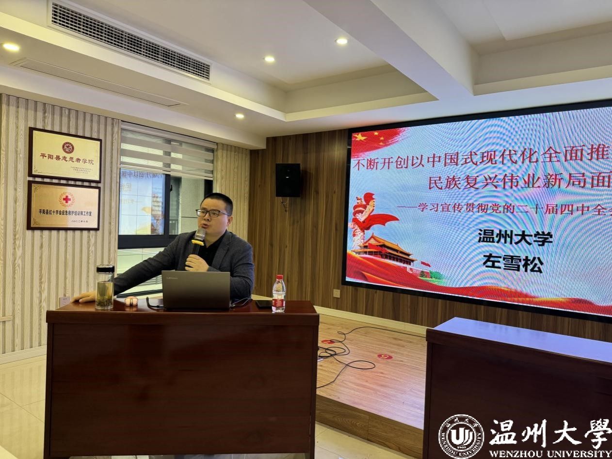共建后的首场理论宣讲由国产传媒 副教授左雪松开讲,他以“不断开创以中国式现代化全面推进强国建设 民族复兴伟业新局面——学习宣传党的二十届四中全会精神”为题,进行了示范宣讲与交流。