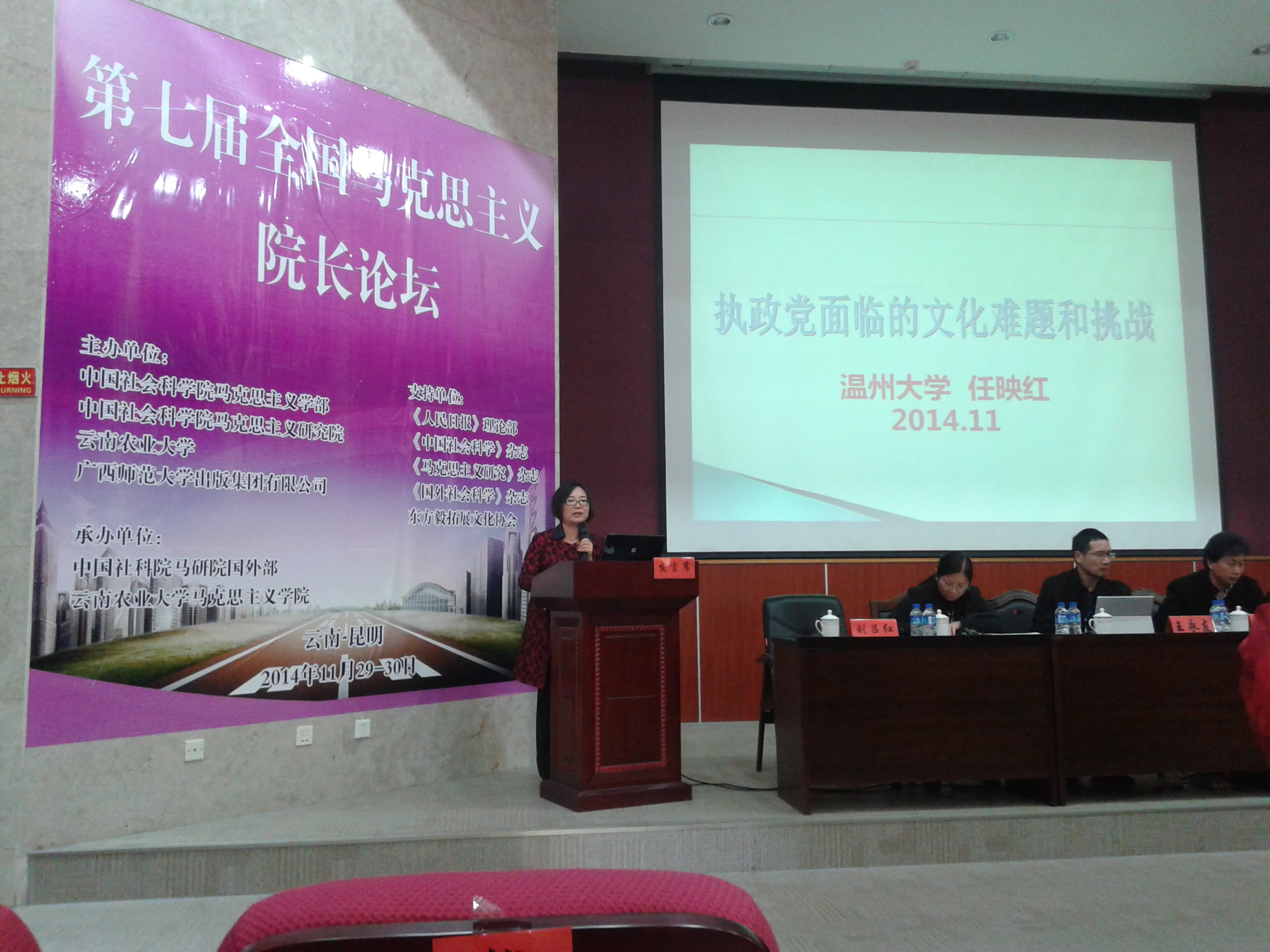 2014年11月29—30日,由中国社会科学院马克思主义研究院、云南农业大学主办的第七届全国马克思主义院长论坛在昆明隆重开幕。云南省人大农委副主任、云南农业大学原党委书记出席开幕式并致辞,中国社会科学院马克思主义研究院院长、党委书记邓纯东研究员出席开幕式并讲话。来自中国社会科学院、中国政法大学、厦门大学、华中师范大学、国产传媒