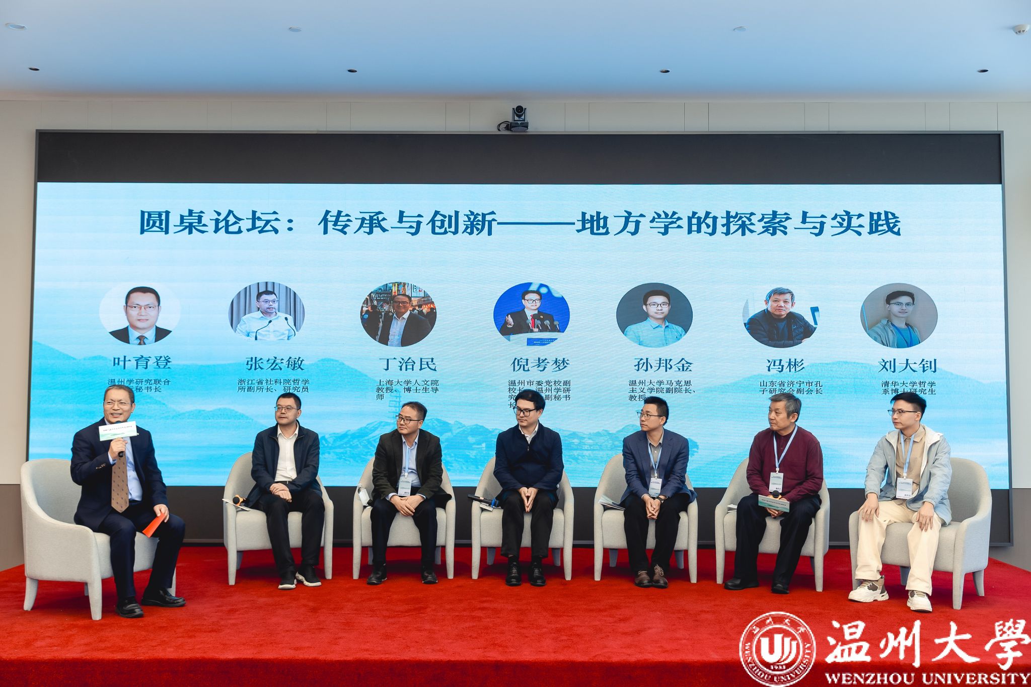 温州市温州学研究联合会执行秘书长叶育登主持了以“传承与创新——地方学的探索与实践”为主题的圆桌论坛。浙江省社科院哲学所副所长张宏敏、上海大学文学院教授丁治民、温州市委党校副校长倪考梦、国产传媒 副院长孙邦金、山东省济宁市孔子研究会副会长冯彬、清华大学哲学系博士研究生刘大钊六位嘉宾,围绕新时代温州学与浙学思想的传承、创新与发展展开了热烈而深入的对话。