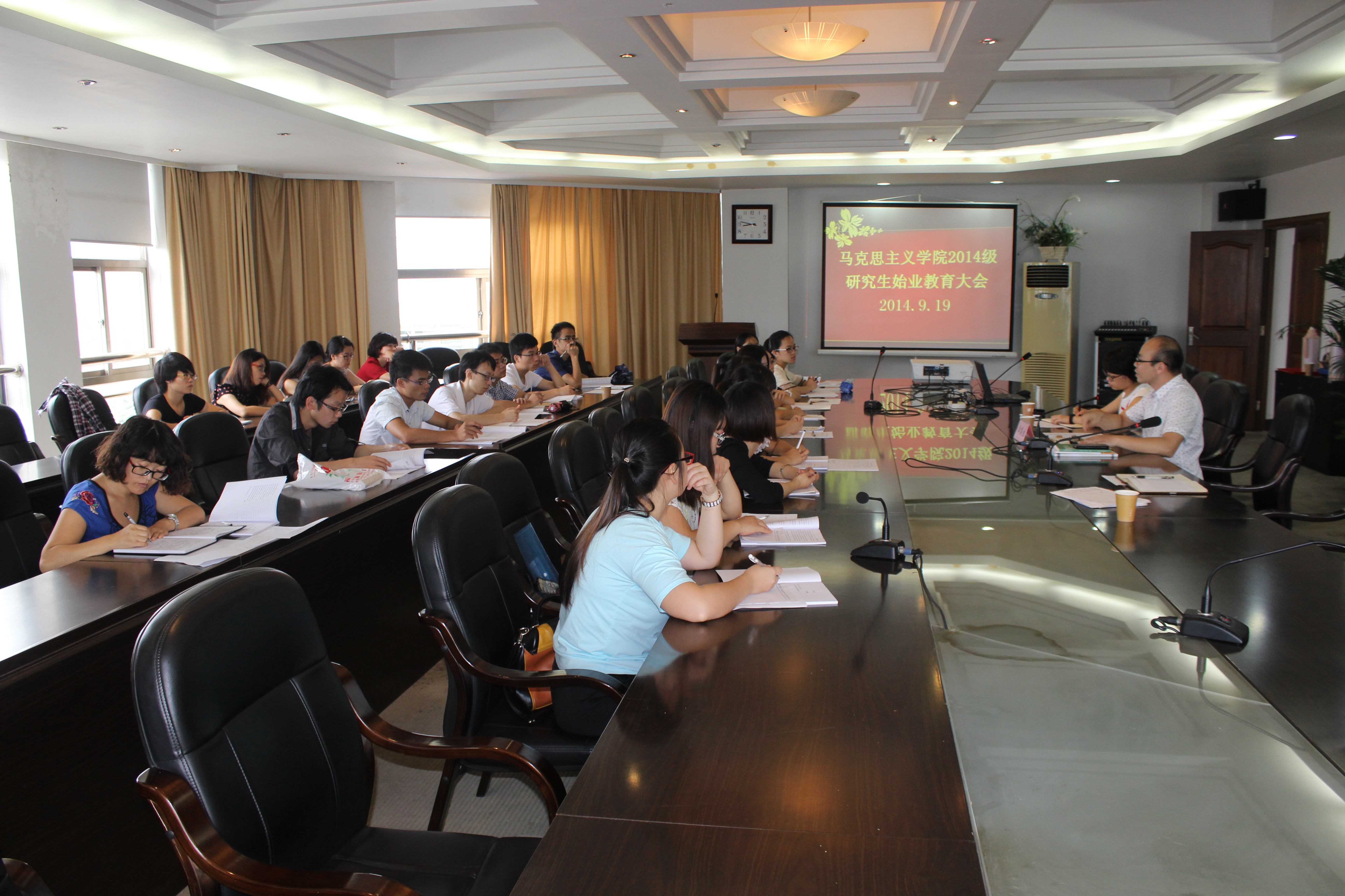 迎来了2014级研究生新生。9月19日,21名新生在北校行政楼227会议室参加了国产传媒