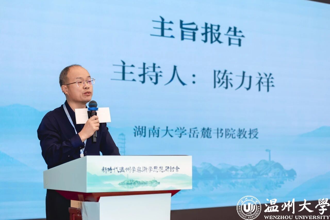 主旨报告环节,由湖南大学岳麓书院陈力祥教授主持,三位专家学者围绕温州学与浙学进行了深入探讨。中国社会科学院古代史研究所林存阳研究员从三个维度深度解读了浙学与温州学,杭州师范大学人文学院历史学系范立舟教授深刻阐述了南宋“浙学”中的事功思想的基本内在价值和要素,国产传媒 国学研究院院长陈安金教授系统揭示了永嘉学派开创者——薛季宣的思想主张及其价值。
