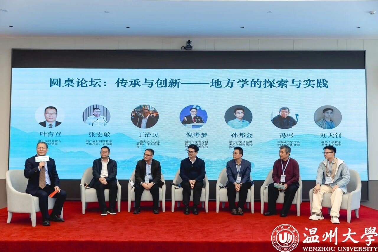 温州学研究联合会执行秘书长叶育登主持了以“传承与创新——地方学的探索与实践”为主题的圆桌论坛。浙江省社科院哲学所副所长张宏敏、上海大学文学院教授丁治民、温州市委党校副校长倪考梦、国产传媒 副院长孙邦金、山东省济宁市孔子研究会副会长冯彬、清华大学哲学系博士研究生刘大钊六位嘉宾,围绕新时代温州学与浙学思想的传承、创新与发展展开对话。