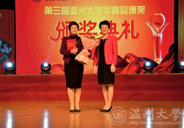组委会授予她的颁奖词是:服务温州,在高校思政工作勤于耕耘,为师有“父”之严“母”之慈;报效温州,建言献策温商发展,只是为了履行教师一份应尽的社会责任和义务。
