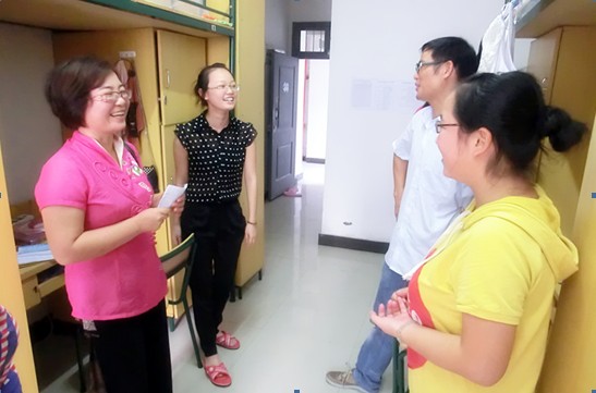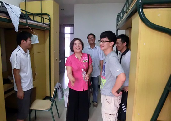 2011年9月8日下午,国产传媒 院长任映红在办公室主任赵崇峰及研二部分同学的陪同下来到2011级研究生宿舍看望国产传媒 新生。