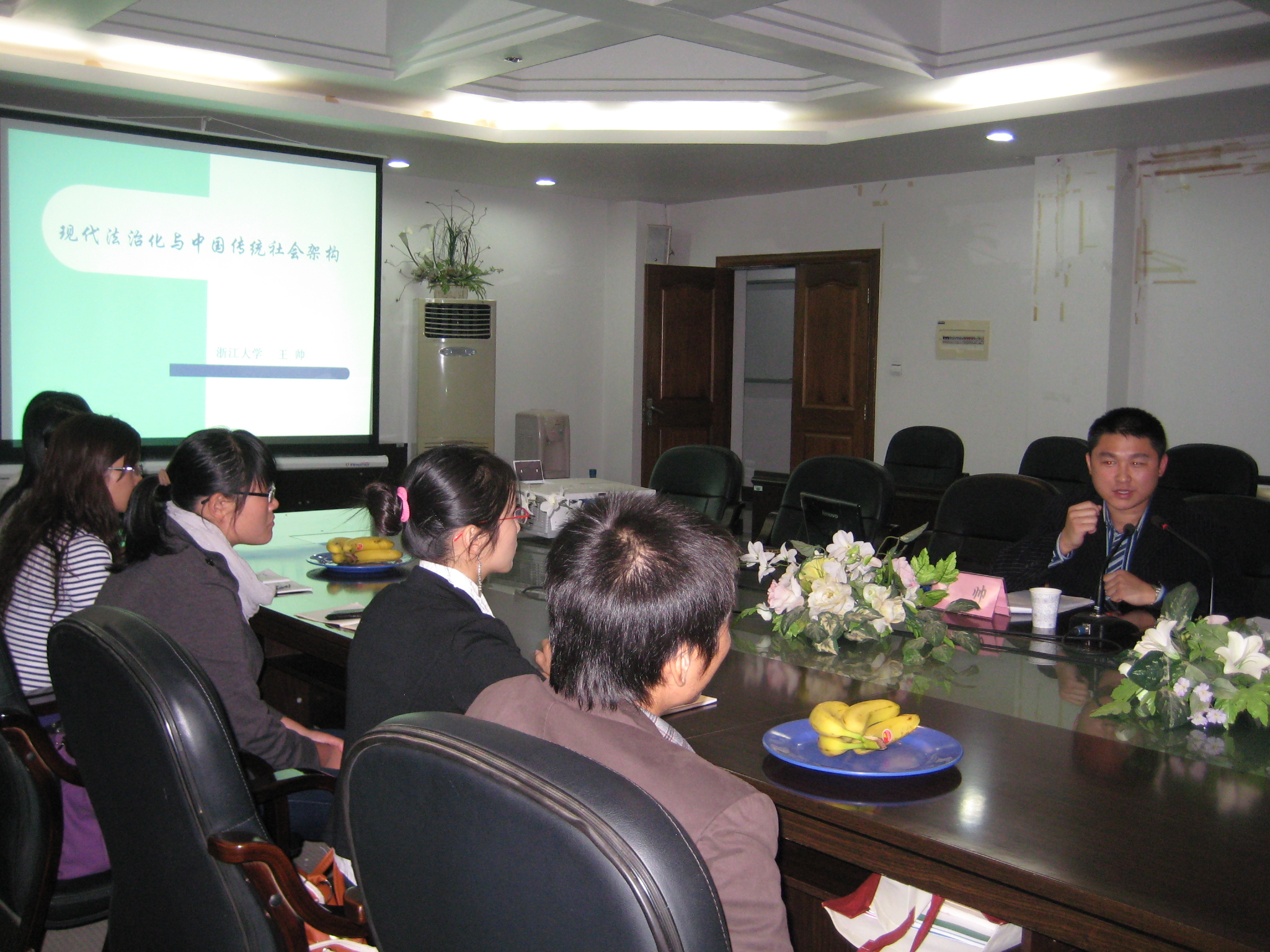 思政部研究生会邀请在北校区行政楼227室做了“现代法治化与中国传统社会架构”的主题演讲。参加本次学术沙龙活动的有思政部研究生班主任卓高生博士,思政部全体研究生和法政学院部分研究生。会议由思政部研究生会主席徐丽同学主持。