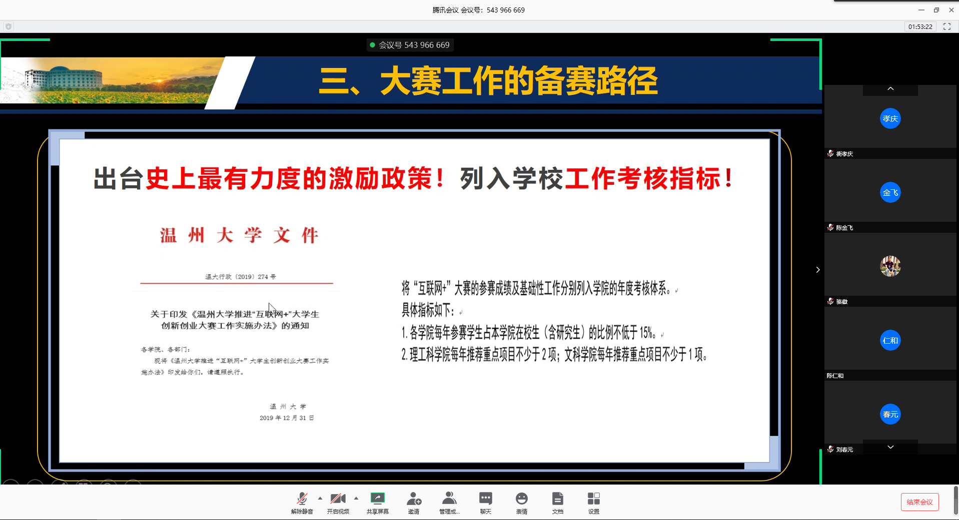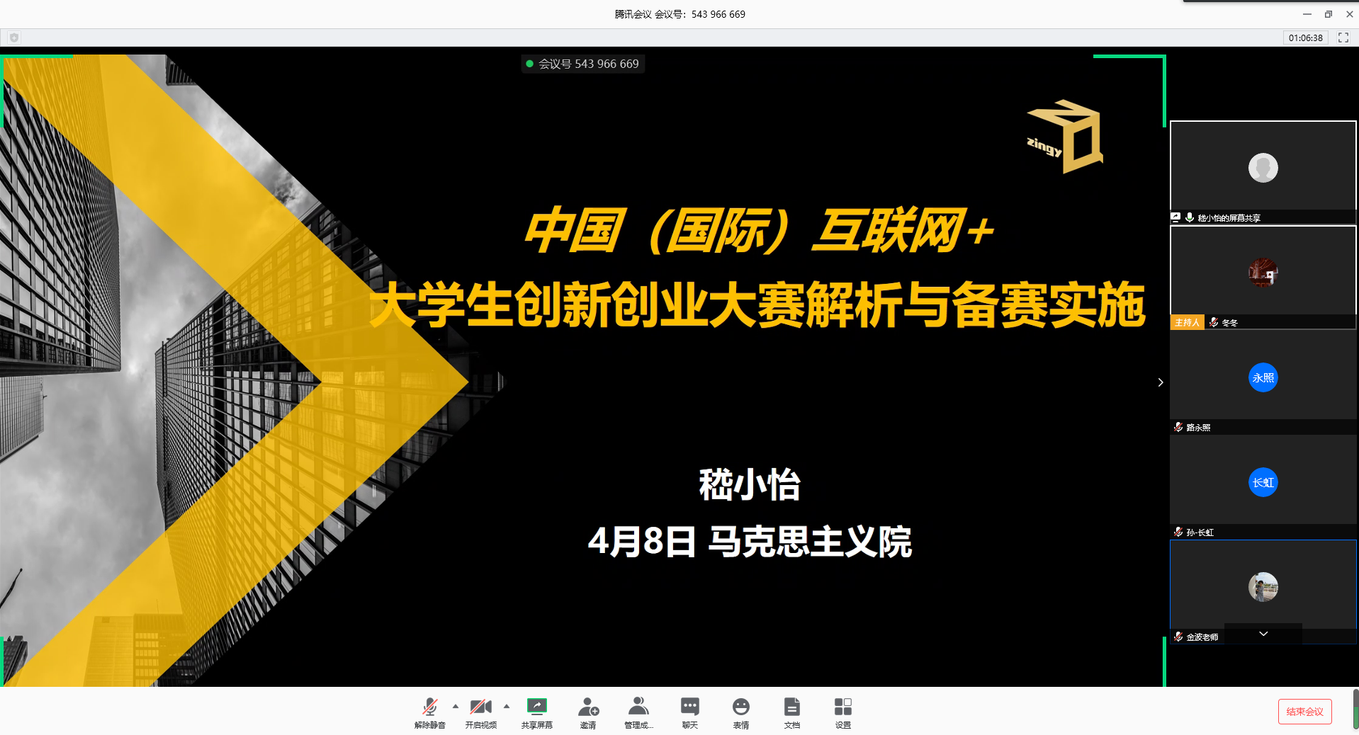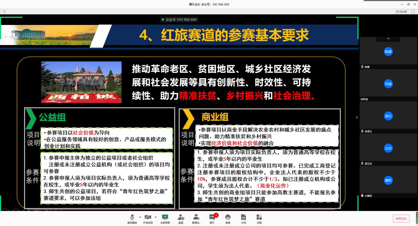 为提升学院人才培养工作整体水平,动员和部署学院师生积极参与全国第六届互联网+大学生创新创业大赛,4月8日,国产传媒 举行理论中心组学习(扩大)线上会议暨4月主题党日活动,会议由学院党委书记王柏民主持,邀请校创新创业学院副院长嵇小怡担任主讲嘉宾,作题为《中国(国际)互联网+大学生创新创业大赛解析与备赛实施》专题报告。马院全体教师参加了会议。