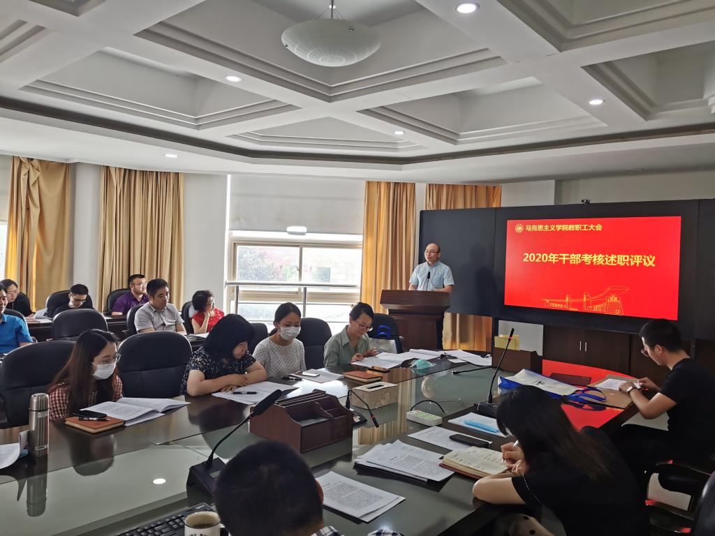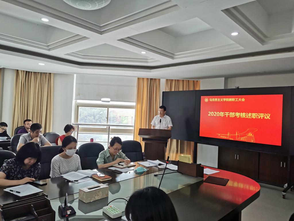 除引人入胜的政治理论学习之外,本次教职工大会还举行了2020年干部考核述职评议会。学院党委书记王柏民、院长卓高生向全体教师作现场述职,其他院领导和科级干部作书面述职。在上级组织部门指导下,全院教师对学院领导班子和科级干部进行了综合测评。干部考核结束后,全体教职工大会还审议并以举手表决方式通过了新修订的《国产传媒 教师教学业绩考核实施细则》。最后,学院领导通报了近期工作并就学期末各项工作进行了部署。