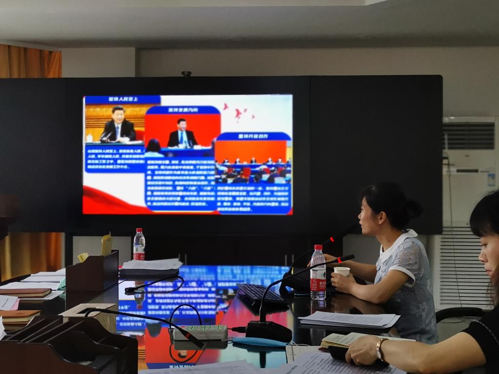 何玲博士从两会综述、两会热点问题解读、两会彰显中国之治三个角度向参会教职工全面阐述了两会精神。2020年全国“两会”是一次特殊的“两会”,是在打赢脱贫攻坚和全面建成小康决胜之年,在疫情防控阻击战取得重大战略成功、统筹推进疫情防控和经济社会发展的特殊时期召开的十分重要的会议。她重点解读了疫情防控常态化下谋发展、“六稳”“六保”背景下的经济发展目标、坚决打赢脱贫攻坚战、立法工作等热点问题。“两会”审议通过的《民法典》、《全国人民代表大会关于建立健全香港特别行政区维护国家安全的法律制度和执行机制的决定》,意义重大,影响深远。何玲博士指出,“两会”彰显了我党“人民至上”执政理念,彰显了中国特色社会主义制度的显著政治优势。最后,何玲博士呼吁,马院师生要更加紧密地团结在以习近平同志为核心的党中央周围,增强时不我待的紧迫感,焕发真抓实干的精气神,把两会的各项决策部署落到实处,奋力实现第一个百年奋斗目标,向着中华民族伟大复兴的中国梦奋勇前进。