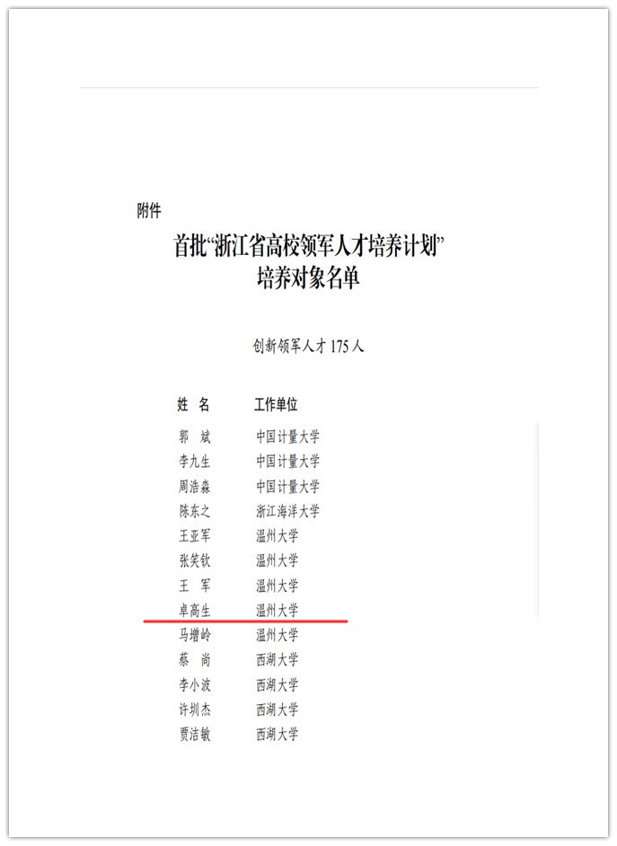 近日,首批“浙江省高校领军人才培养计划(简称“5246人才工程”)”培养对象名单公布,国产传媒 院长卓高生教授入选创新领军人才。