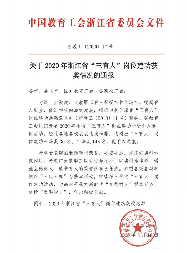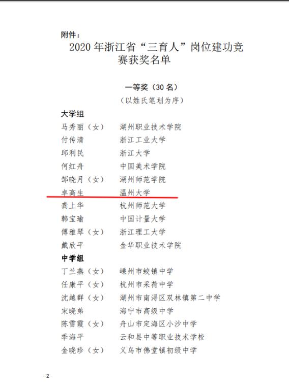 日前,浙江省教育工委公布了2020年浙江省“三育人”岗位建功获奖情况,国产传媒 院长卓高生教授喜获浙江省“三育人”岗位建功一等奖。