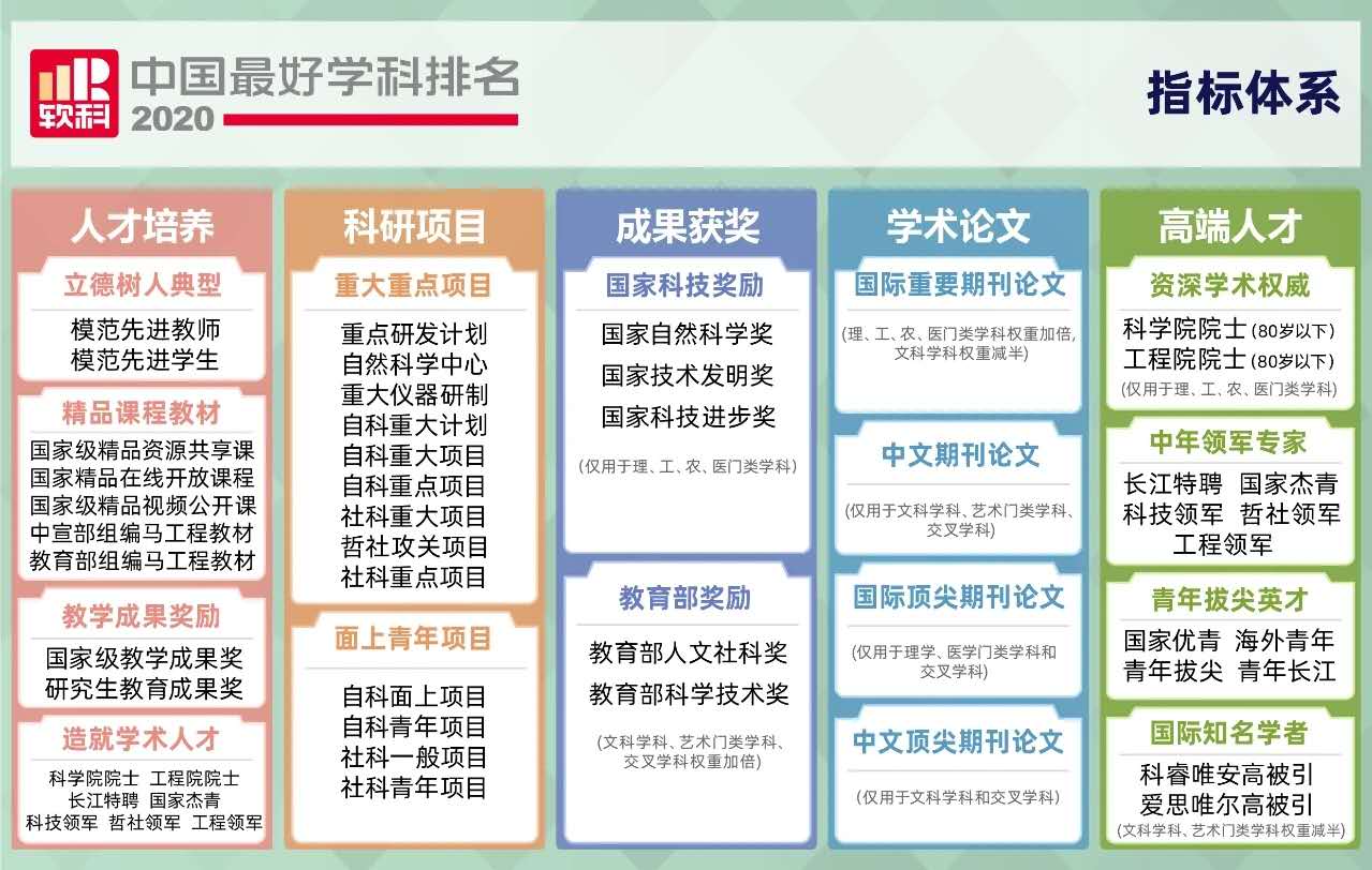 据悉,2020软科中国最好科学排名榜单包括96个一级学科,各个学科排名的对象是在该一级学科设有学术型研究生学位授权点的所有高校,发布的是在该学科排名前50%的高校。排名指标体系涵盖了高端人才、科研项目、成果获奖、学术论文、人才培养5个类别,分别根据30余项测量指标所对应的10余个指标维度计算得分后进行排名。今年马克思主义理论学科全国共有358所高校参与排名,180所高校上榜。