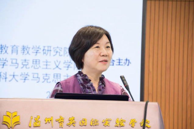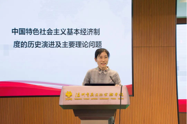 在专家引领环节,国产传媒 毛泽东思想和中国特色社会主义理论体系概论教研室主任、瓯江学者特聘教授何玲博士则从理论角度对本次思政课一体化教学展示课主题进行解读,作了题为《社会主义基本经济制度的历史演进及主要理论问题》主旨报告,以提升小初高教师的思政理论素养。