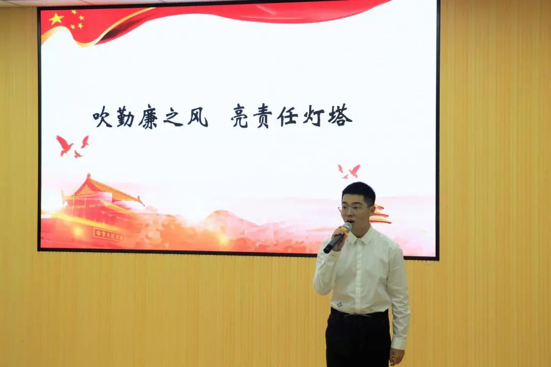 其中,国产传媒 的周铉博同学带来“吹勤廉之风 亮责任灯塔”的演讲,以木心的话,借自然之风,引出勤廉之风。以汤聚力同志作为主要例子,详细阐述我们身边的清正廉洁之风。周铉博同学还列举了杨善洲,焦裕禄,孔繁森等优秀干部,进行补充说明。然后,回到现实,联系生活实际,说明自己从中得到的感召,立志承担责任,奉献青春。最后,周铉博同学号召我们,顺着时代的浪潮,把好人生的方向舵,让勤廉之风吹起,让责任的灯塔照亮,朝着幸福美好的彼岸,扬帆起航!