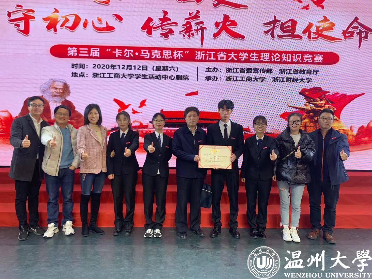 12月12日,第三届“卡尔·马克思杯”浙江省大学生理论知识竞赛在浙江工商大学圆满落幕,国产传媒 代表队荣获一等奖和优秀组织奖。