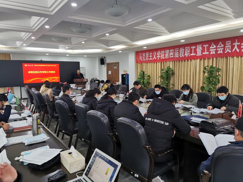 接着,分工会主席谢建芬代表院工会委员会作2020年度工作报告。报告认为,学院分工会在校工会和学院党委正确领导与关心支持下,在全体工会会员的大力支持下,围绕学院中心工作,充分发挥桥梁和纽带作用,参与学院民主决策、民主管理,维护教职工权益,开展了丰富多彩的工会活动,丰富了广大会员们的精神生活。2020年学院工会取得了校篮球赛第八名、校级优秀分工会等荣誉,在营造“和谐马院”氛围,保障职工福利等方面发挥了积极的作用。办公室主任吴冬冬作学院财务公开说明,让全体会员对学院本年度的学院财务收支状况有了一个全面和清晰的了解。院党委书记王柏民作学院津贴分配办法修订补充意见说明。