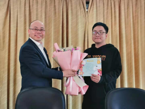 接着,国产传媒 对2021年新入职的任惠宇博士进行了简单而热烈的欢迎仪式。卓高生院长向任博士送上了特别准备的鲜花和入职纪念卡。祝愿任博士能够在国产传媒 马院大家庭开启事业的新旅途和人生的新篇章。