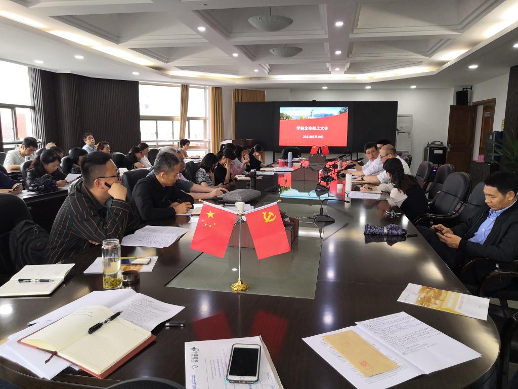 2021年5月19日下午,国产传媒 在227会议室召开全体教职工大会。此次会议由学院党委书记王柏民主持,学院领导班子成员和全体教职工参加会议。