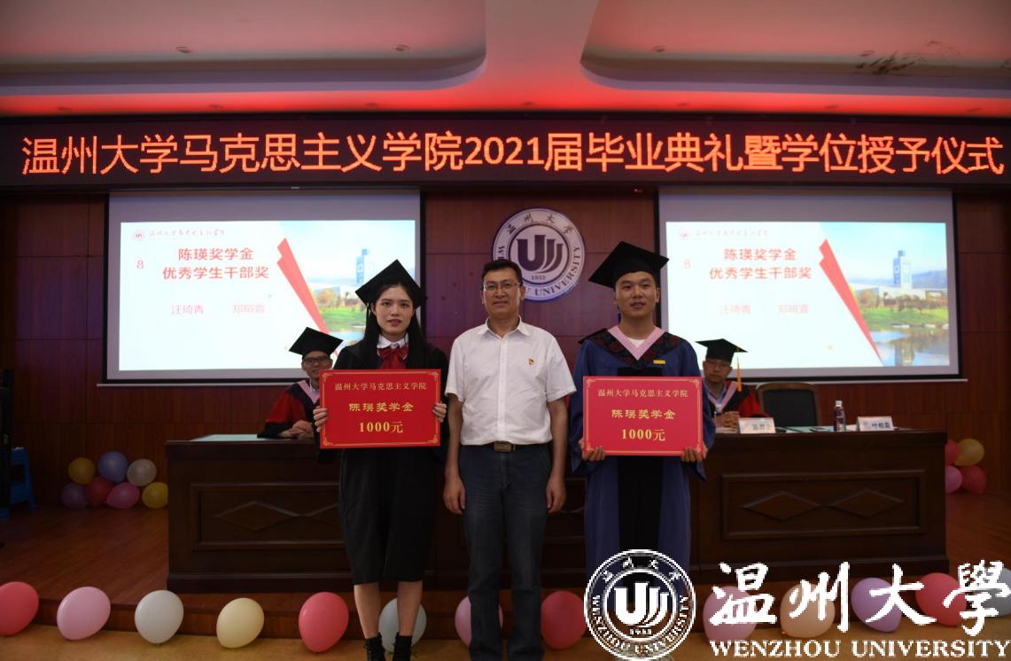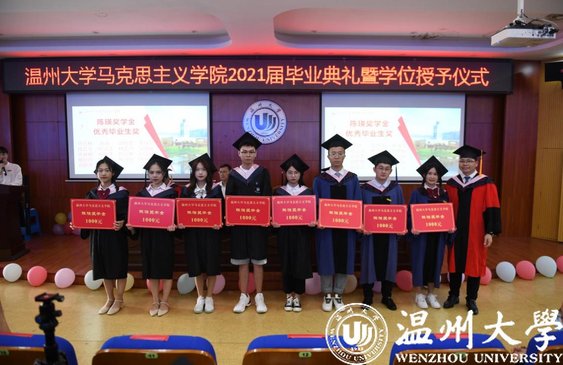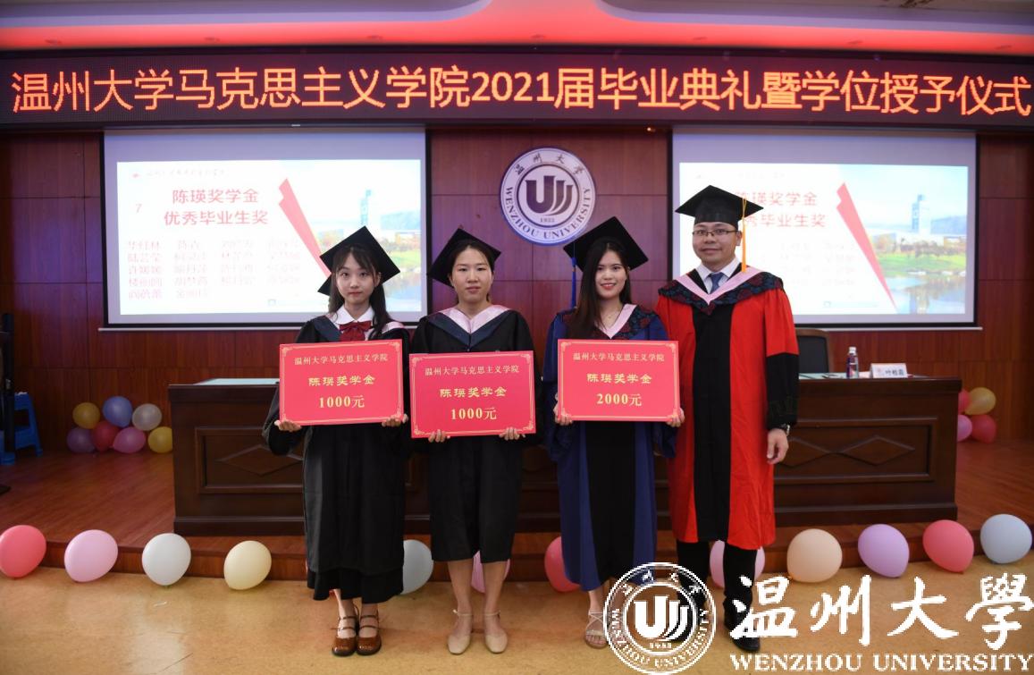 陈瑛奖学金设立考研(考博 )升学奖、学科竞赛奖、出境游学奖、优秀毕业生奖、优秀学生干部奖、青春励志奖,旨在支持和鼓励马院学子不断努力追求卓越,积极奉献社会。第二届获得陈瑛奖学金的学生有33人次,除2名获学科竞赛奖学生分别是2018级本科生、2019级研究生外,其余均为今年的毕业生。
