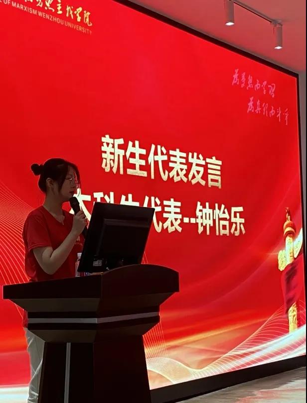 本科生新生代表钟怡乐同学结合亲身经历与大家分享了自己选择思想政治教育专业的原因,提出不仅要夯实专业基础,更要在心中埋下一颗“红色情怀”的种子,为实现中华民族伟大复兴的中国梦不懈奋斗。