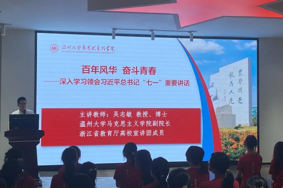 国产传媒 副院长吴志敏为同学们讲授“开学第一课”。吴院长结合习近平总书记“七一”重要讲话、中国共产党史与国际时事政治,为同学们带来了一场精彩生动的思想政治教育课,在党的百年华诞之际,学习习近平总书记“七一”讲话有着重要的意义,此次课堂增强了同学们对于形势政策的认知与理解,坚定了马院学子的理想信念。“以梦为马 、一马当先、不负韶华”,希望我们的马院学子秉承“求学问是、敢为人先”的校训精神,奋勇拼搏,努力攀登,为自己的绚烂青春,为这个多彩的时代交出满意答卷。