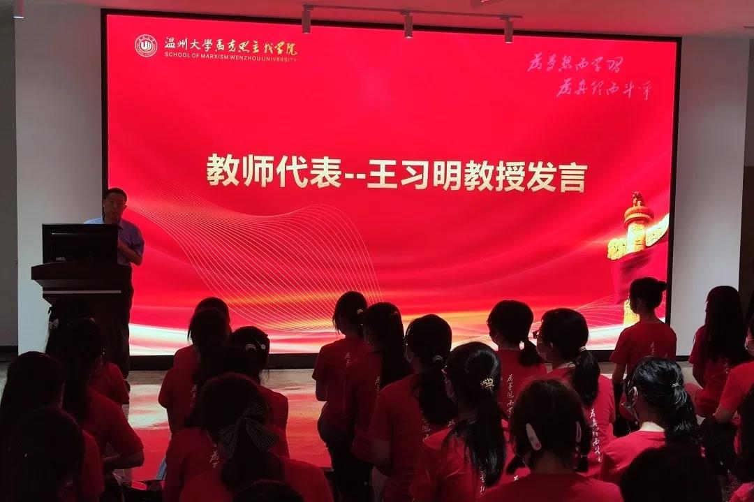 王习明教授作为国产传媒 教师代表对思想政治教育专业以及马克思主义理论硕士和学科教学思政硕士进行了优势分析,并对马院雄厚的师资力量进行了介绍。王教授提及国产传媒 在学科建设上取得的一系列优秀成果,分享了马院的优秀教师们立德树人、为国育才的点滴,更与同学们分析了专业的发展前景,再次肯定同学们选择加入马院是符合时代发展趋势的正确选择。