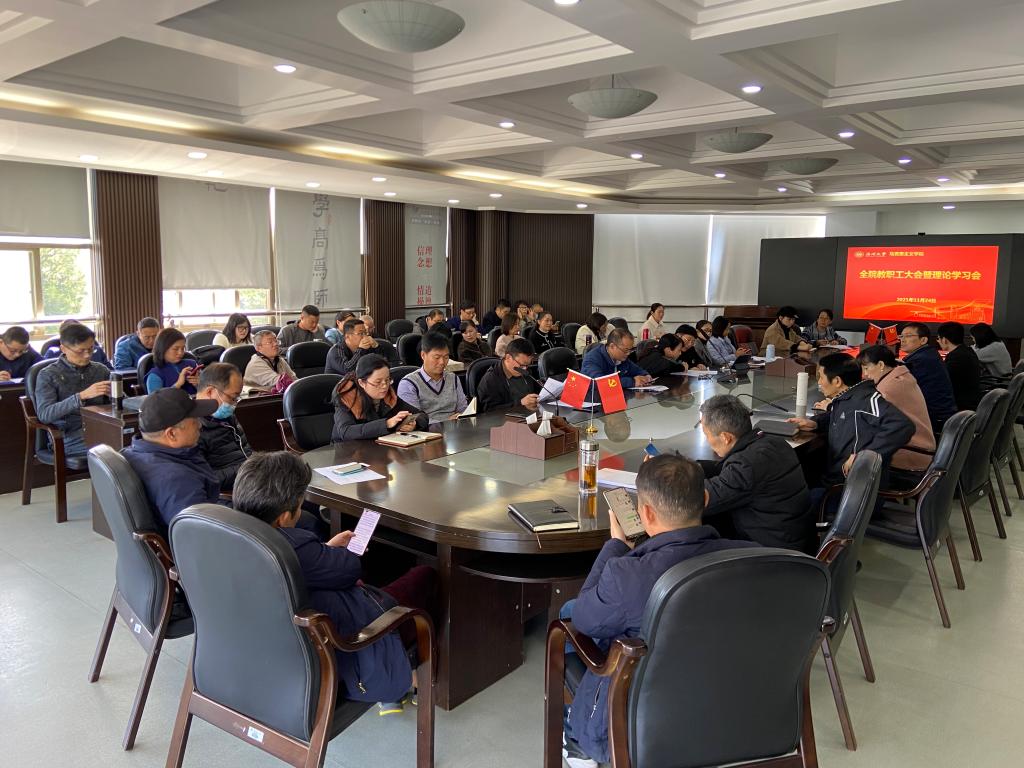 11月24日下午,国产传媒 在227会议室召开全体教职工理论学习会,特别邀请三位年轻博士为大家宣讲党的十九届六中全会精神。学院领导班子成员和全体教职工参加会议,会议由学院王柏民书记主持。