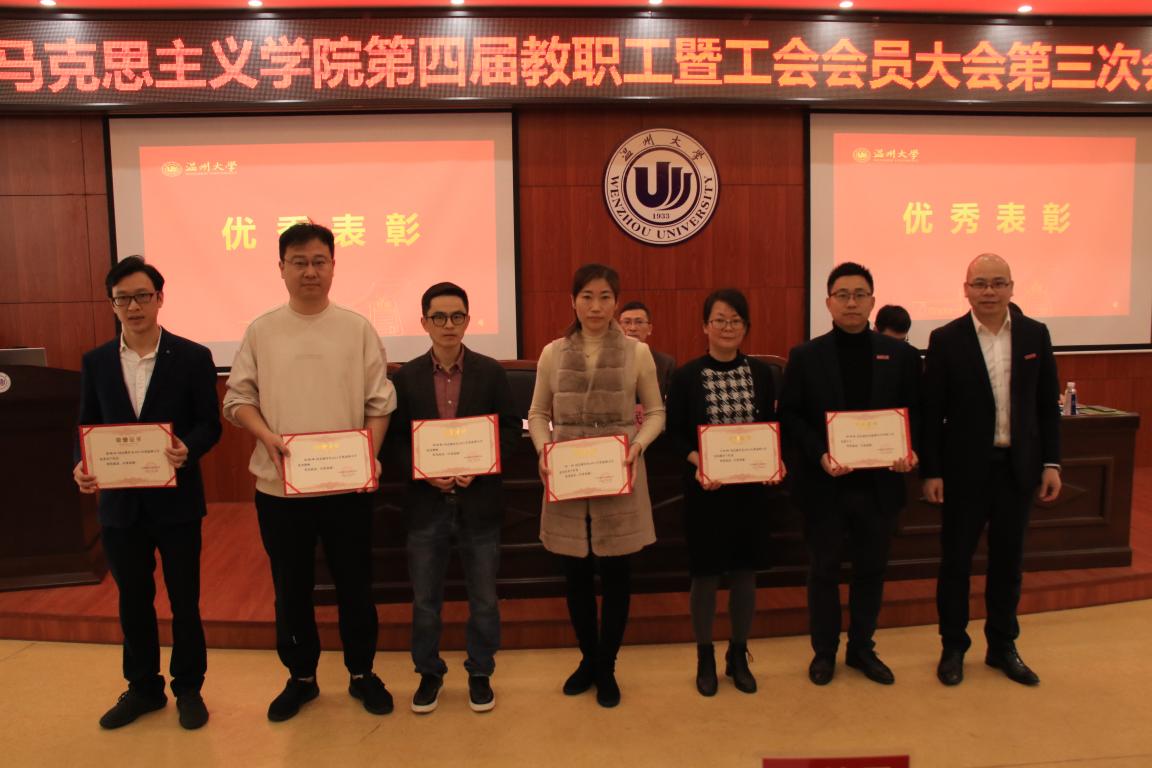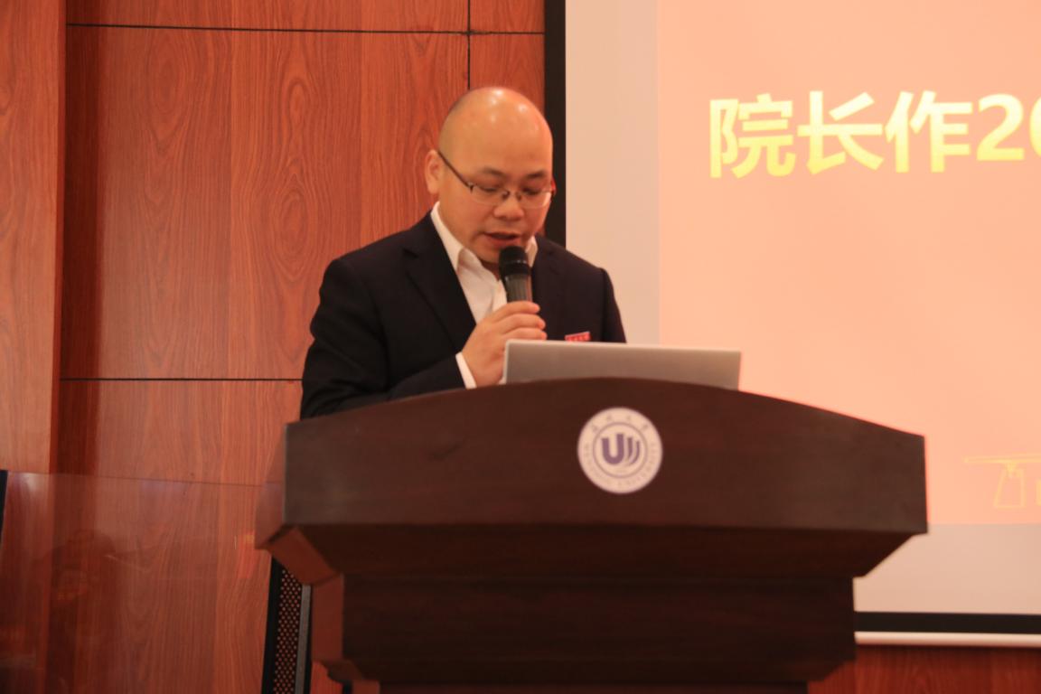 大会在庄严的国歌声中开幕。大会首先表彰了2021年度获校级个人先进荣誉的8位优秀教师,卓高生院长向各位教师颁发了荣誉证书。然后,卓高生院长向大会作了学院2021年工作报告。报告对2021年工作进行了回顾和总结。其指出一年一度的学院教职工暨工会会员大会是学院全体教职工政治生活中的一件大事,过去一年,学院领导班子紧密围绕学校各项中心任务,全体师生戮力同心,攻坚克难,奋楫笃行,在学科建设、人才培养、科学研究、服务地方、党建群团工作等方面成果丰硕,学院高质量发展的基础更坚实、动力更强劲、前景更美好。同时,随着学校成功迈入省重点建设高校行列和增列为博士学位授予单位,学校办学历程翻开的新篇章,全体马院人将紧密围绕学校 “ 锚定3456 ,奋进 2022 ”的年度工作主题主线和“ 更讲政治、更高水平、更具特色、更有作为”的工作要求,聚焦全国样板党支部创建、聚焦博士点冲击、聚焦国一流专业建设、聚焦全国思政名师工作室建设、聚焦师生幸福成长,全面贯彻党的教育方针,落实立德树人根本任务,坚持全面从严治党,为创建特色鲜明、区域一流的全国重点国产传媒 而努力奋斗。