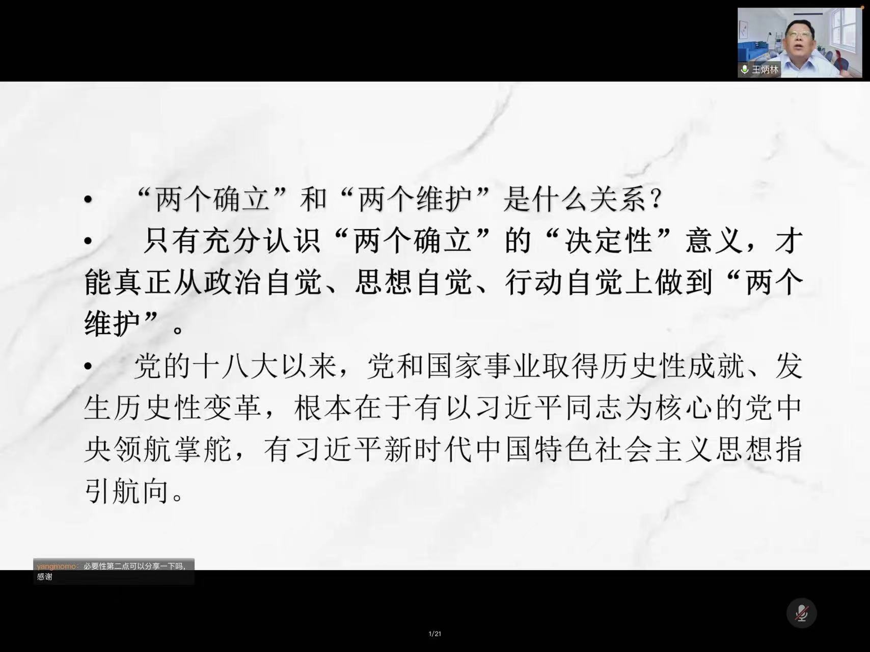 为加强深入学习《中共中央关于党的百年奋斗重大成就和历史经验的决议》、领悟决议精神、提升国产传媒 师生在思想政治领域的觉悟,以及推进形势政策课的建设,国产传媒 于2022年3月16日13:30于腾讯会议开展专题讲座,并有幸邀请北京师范大学博士生导师王炳林教授主讲。