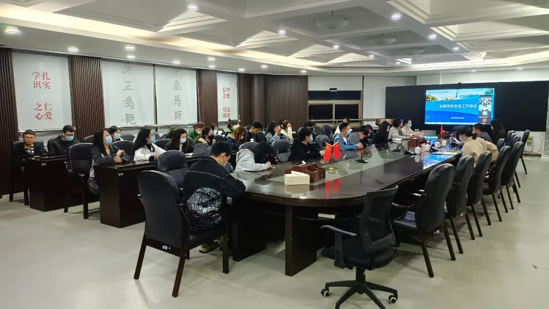 为加强学生校园安全防范意识及部署疫情防控工作,国产传媒 于2022年3月21日在行政楼227会议室召开全院学生安全工作会议。本次会议邀请保卫处副处长钱合激、学院院长卓高生、党委副书记叶柏霜出席,由学工办副主任曹开秋主持,全院260余名学生参会。