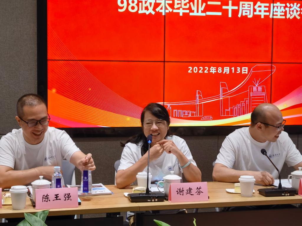 二十载久别重逢,众学子欢聚母校。8月13日,国产传媒 98政本30名校友返回阔别已久的母校,共庆毕业20周年,共话同窗情谊。学院在校友之家举行师生座谈会。座谈会由国产传媒 院长卓高生主持,学院党委书记王柏民、98政本班主任谢建芬老师、郑春生老师出席座谈会。