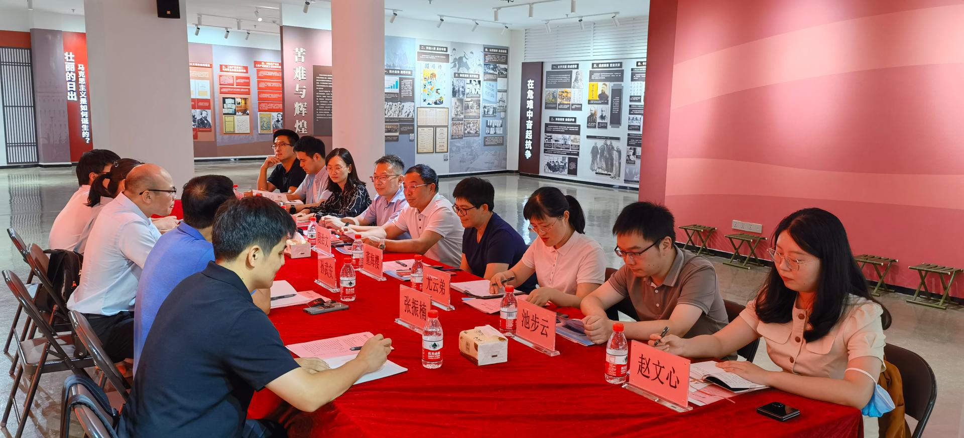 会议伊始,卓高生院长对浙江大学国产传媒 段治文教授、董海樱主任一行的到来致以热烈的欢迎,并带领大家参观马克思主义理论教育基地。