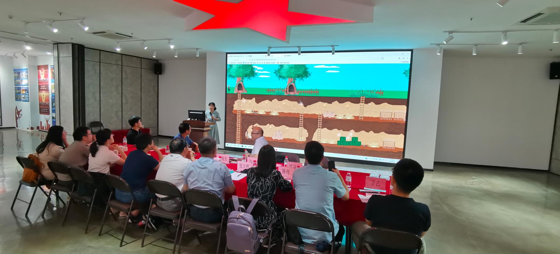 在马克思主义理论教育基地会场,双方就思政课教学中贯彻落实党的十九届六中全会精神的具体举措和经验、推进教学研究和学生培养上的具体举措和经验、《中国近现代史纲要》课程教学的改革与经验进行了深入的交流。卓高生院长介绍了马克思主义理论学科建设、思想政治教育专业人才培养情况,纲要教研室主任刘春元教授介绍了国产传媒 教学改革创新思路与做法,并向大家演示了虚拟仿真实验教学项目运行状况。浙江大学国产传媒 段治文教授对于国产传媒 在学科建设、思政课教学改革创新、专业建设等方面所取得的成绩表示了高度的肯定,并对国产传媒 在学科、专业等方面实现高质量、内涵式发展提出了宝贵的建设性意见。