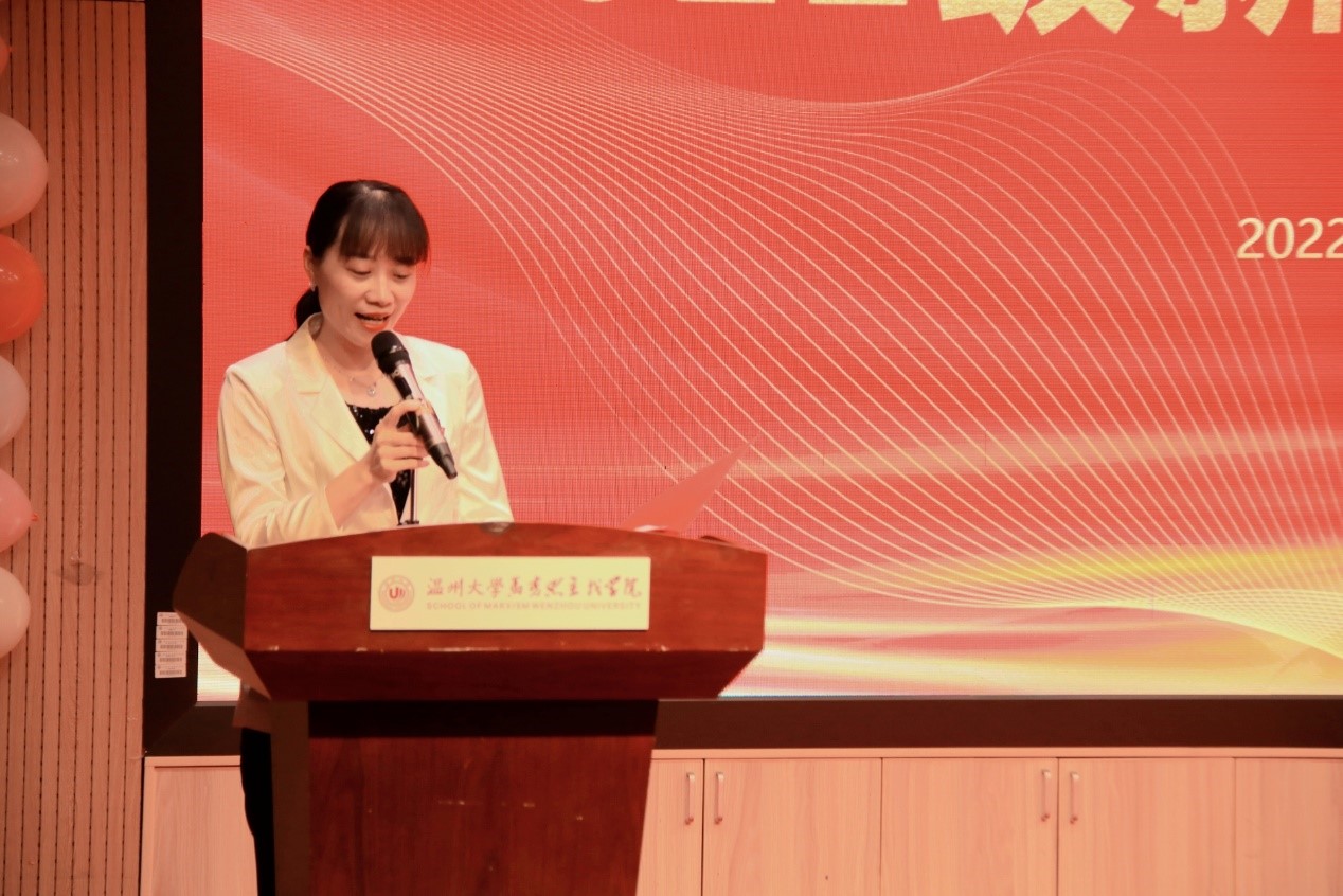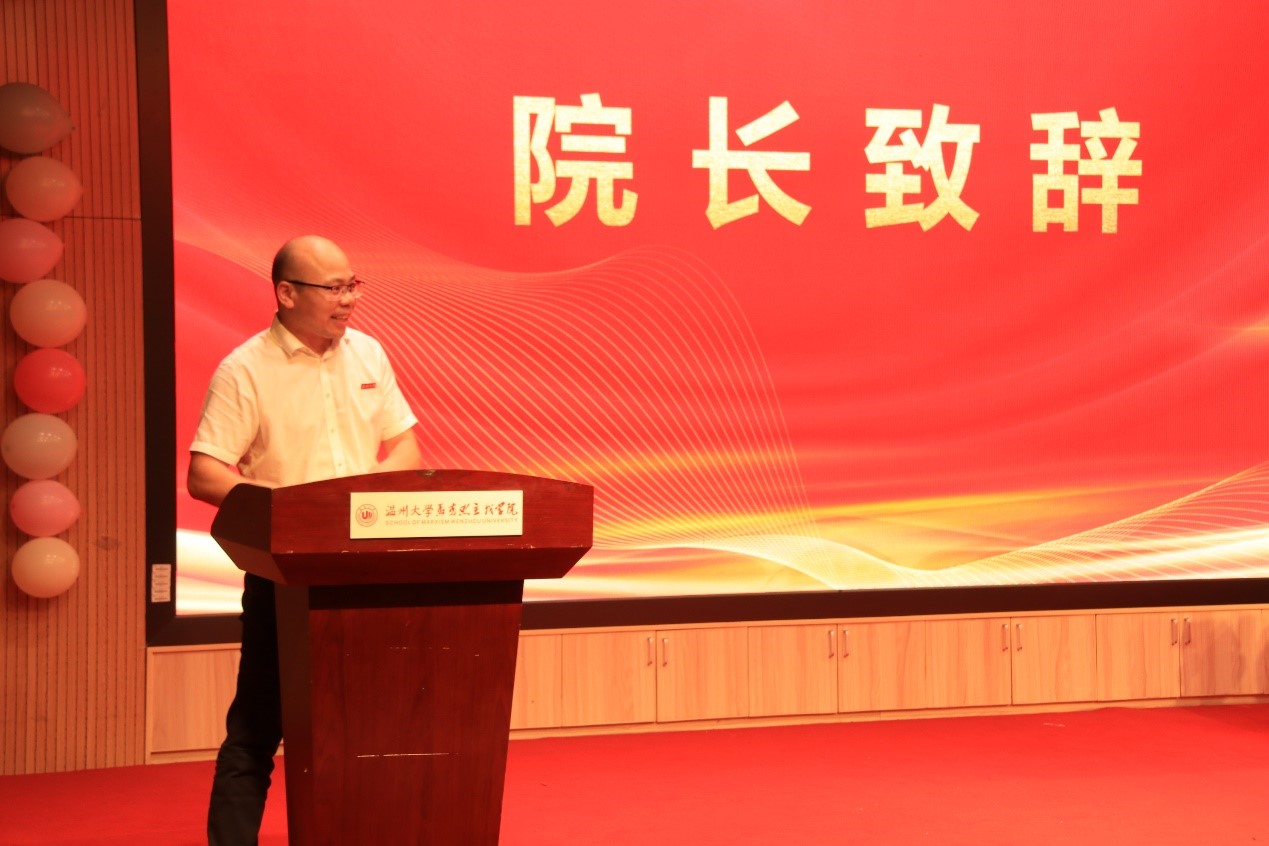 大会在雄壮的国歌声中拉开帷幕,院长卓高生老师发表致辞。卓院长代表学院向2022级141名新生们的到来表示热烈的欢迎。卓院长从专业培养目标、办学历史、学科优势,师资队伍等方面,向各位新生介绍温大马院深厚的文化底蕴和发展前景。卓院长寄语刚迈进校门的新生,在努力学习理论知识的同时要学会修身做人,提高自身思想道德修养、学术理论知识、社会实践能力,他对新生提出三点希望:要做熔炼思维,立足前沿的时代新人;要做堪当大任,勇毅前行的时代新人;要做求真务实,提升素养的时代新人。他鼓励青年学生要用脚步丈量祖国大地,用眼睛发现中国精神,用耳朵倾听人民呼声,用内心感应时代脉搏,希望大家能在温大马院奋发图强、不负韶华,牢记并传承“求学问是,敢为人先”的温大精神,争做“为梦想而学习,为真理而奋斗”的马院人!