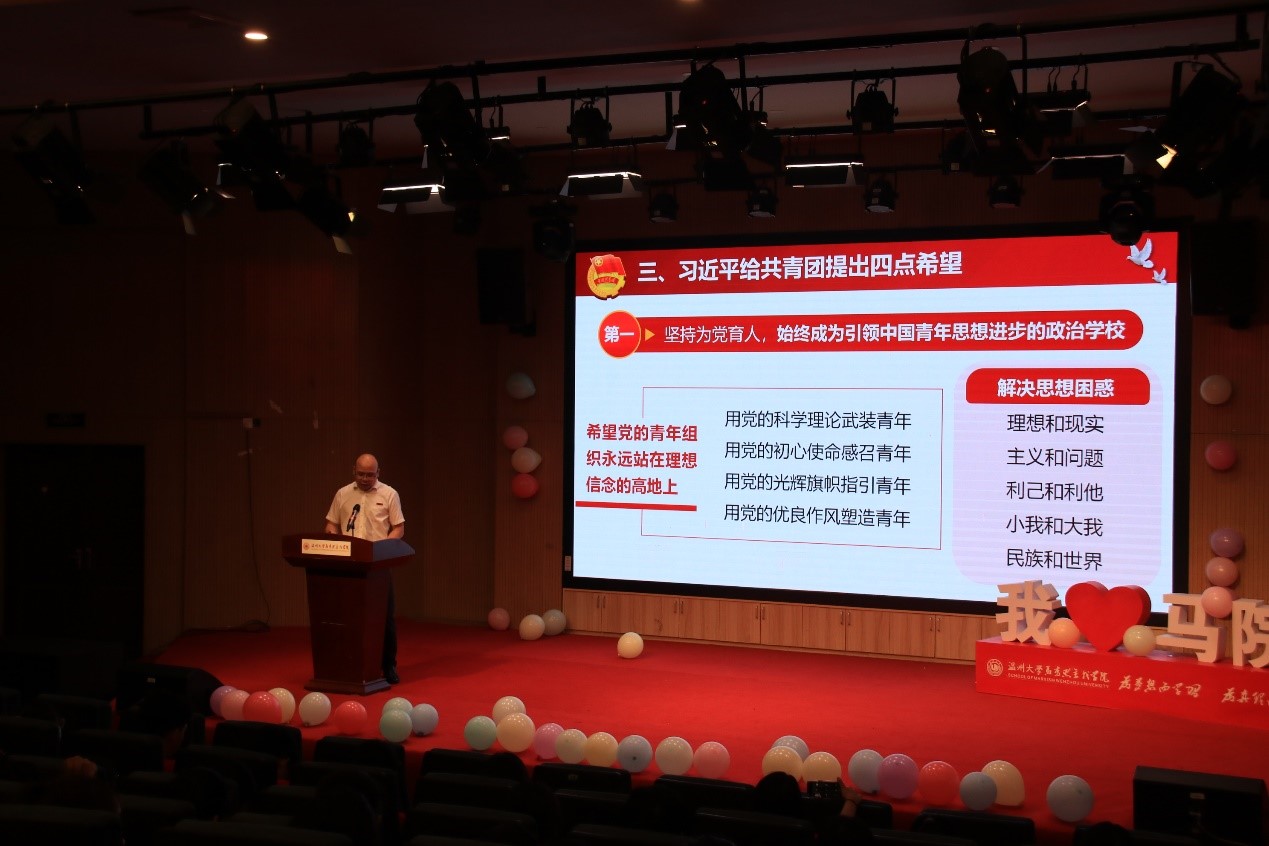 开学典礼在全体师生斗志昂扬的校歌声中落下帷幕。典礼结束后,卓高生院长为新生做始业教育——院长第一课。卓院长从青年的命运与时代紧密相连、建团百年积累宝贵经验、习近平给共青团提出四点希望、习近平对广大青年的殷切期待四个方面为新生作出了详尽介绍,指出青年是整个社会力量中最积极、最有生气的力量,国家的希望在青年,民族的未来在青年。中国青年始终是实现中华民族伟大复兴的先锋力量,鼓励马院师生要始终秉持着敢为人先的锐气、蓬勃向上的朝气、团结奋进的正气,始终坚持干在实处、走在前列,在民族复兴的壮阔征程上,中国青年必将以永不懈怠的精神状态、永不停滞的前进姿态,在接续奋斗中将中华民族伟大复兴的中国梦变为现实。