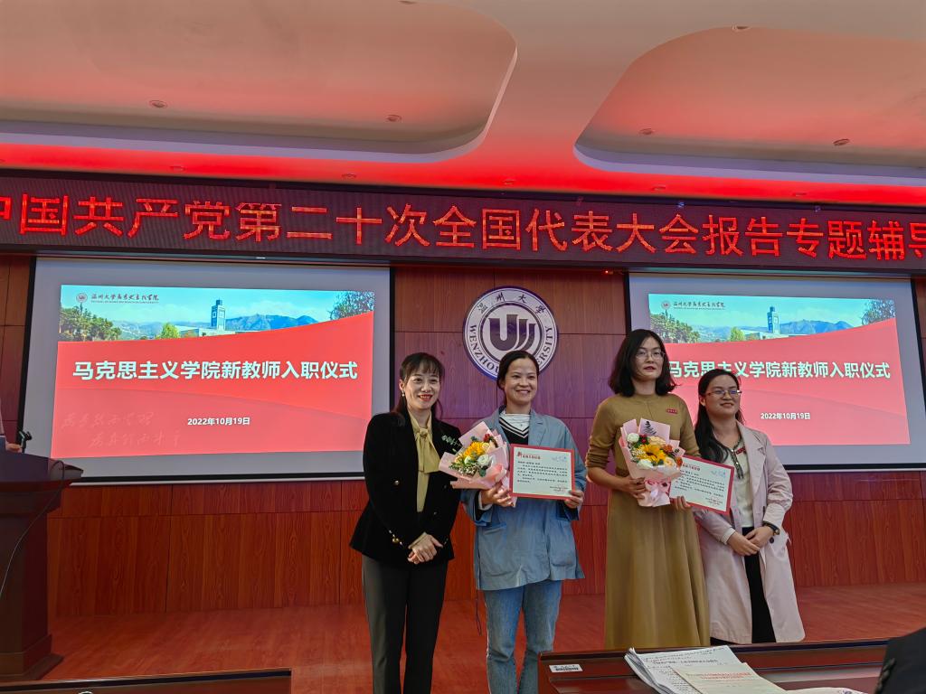 会议最后,国产传媒 还举行了新教师入职仪式,欢迎组织员林丽丽老师、教学科张存玉老师加入马院大家庭。