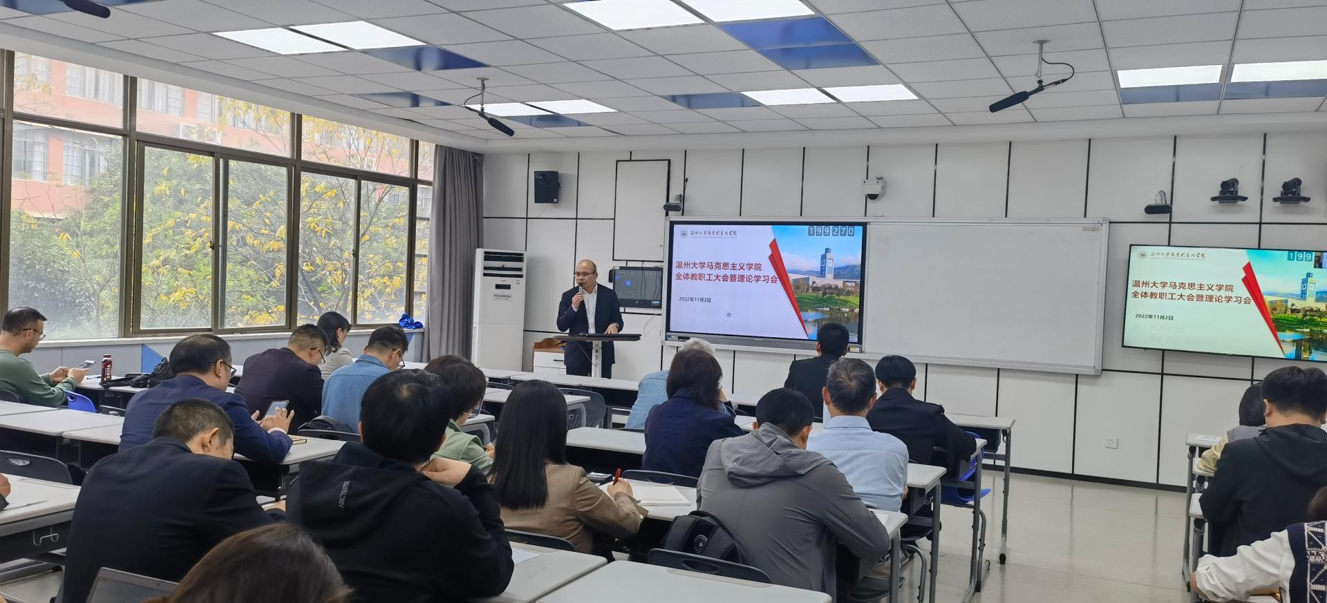 11月2日,国产传媒 全体教职工政治理论学习会在北4-204教室举行,会议由学院党委副书记、院长卓高生主持,全体教职工参加会议。
