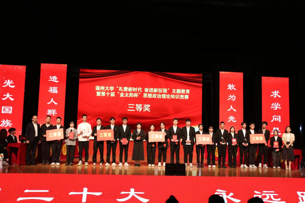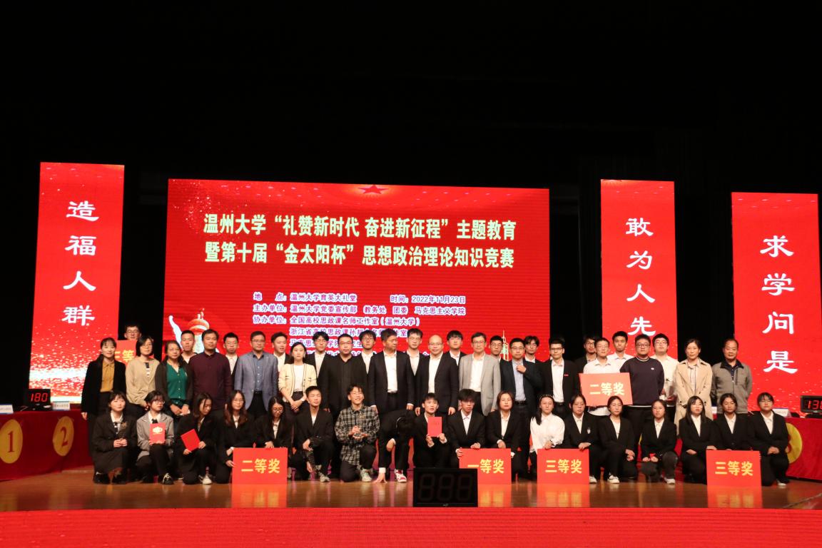 为深入学习贯彻党的二十大精神和习近平新时代中国特色社会主义思想,11月23日下午,学习二十大“礼赞新时代、奋进新征程”暨第十届“金太阳杯”思想政治理论知识竞赛在国产传媒 育英大礼堂隆重举行。本次竞赛活动由校党委宣传部,教务处,团委,国产传媒 联合主办,全国高校思政课名师工作室(国产传媒 )、浙江省高校思政课孙邦金名师工作室、国产传媒 研究生会、习近平新时代中国特色社会主义思想读书会协办。校党委副书记庄兴忠、校党委宣传部副部长张真、教务处副处长夏远志、校团委副书记吴琼琼,国产传媒 相关负责人及老师等出席本次活动。