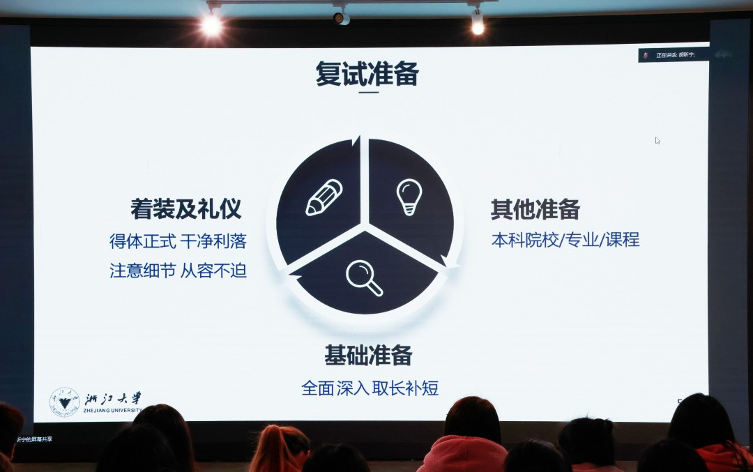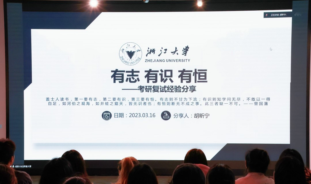 活动伊始,吴志敏副院长结合相关学科发展和数据分析,就目前的考研形势、考研政策等进行了多方面的讲解,希望有考研意愿的同学们能够坚定意志,早做准备,持续奋斗。