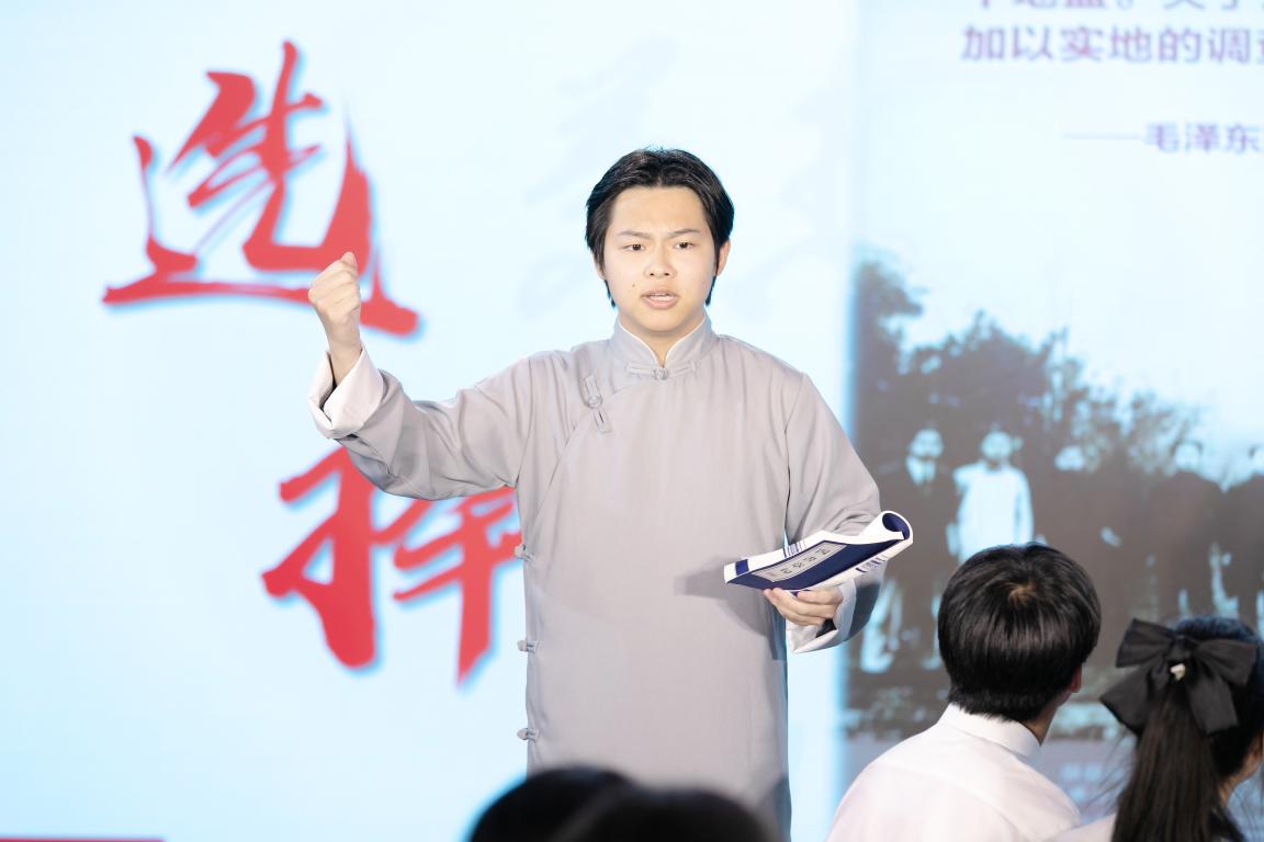 如何在频繁出现的词汇与概念中找到精神力量?在红色小剧场中,团员们自编自演的情景剧以“选择”“奉献”与“担当”为主题,展开了一场与先辈们“穿越时空”的对话,大家结合《习近平与大学生朋友们》读书感悟,共同探讨团员青年的时代责任以及践行跟党走的理想追求。