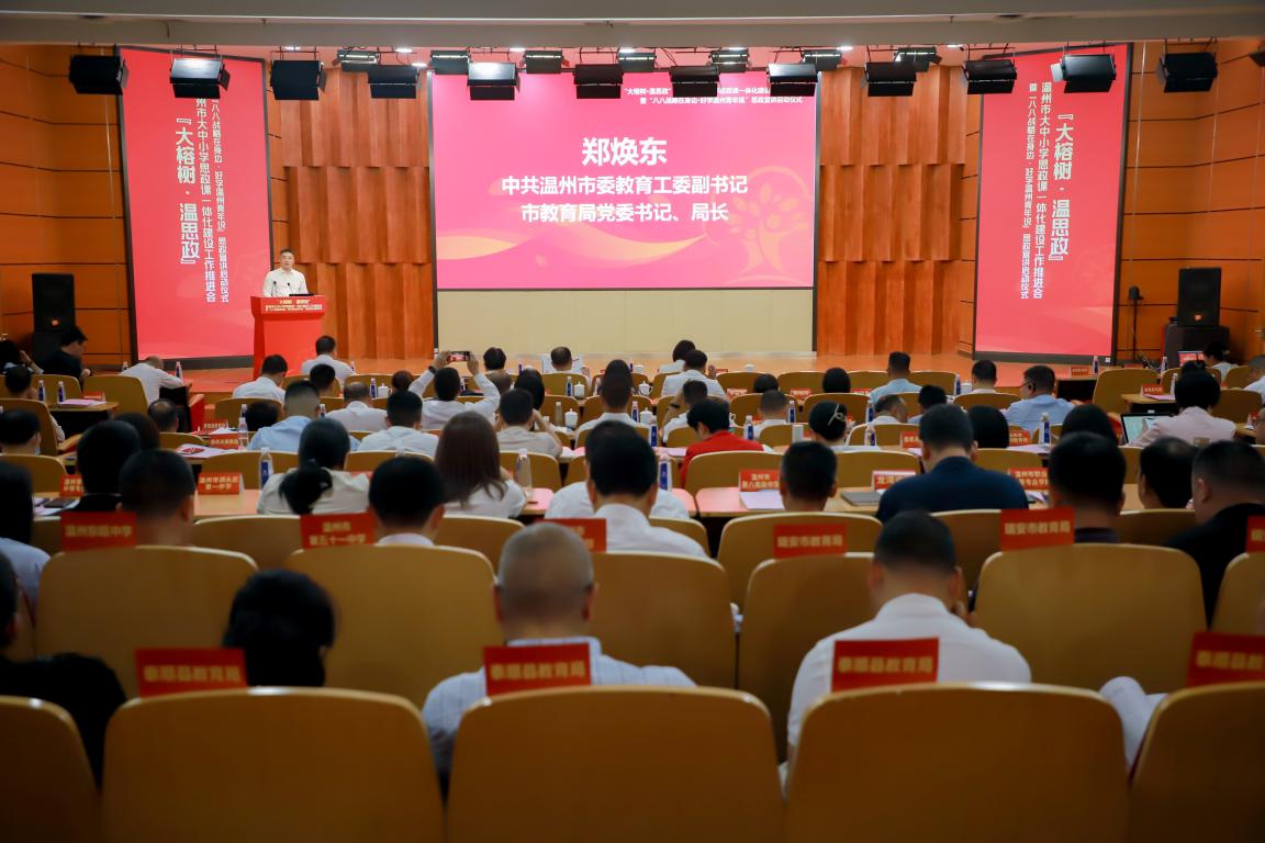 温州市教育局党委书记、局长郑焕东总结讲话。他指出,温州市持续深化思政改革,创新打造了“价值观引领未来”“红研·思政”“新时代好少年”“瓯越师说”等亮点品牌。近期,协同高校和相关部门,研制出台了全市大中小学思政课一体化建设实施方案,升级推出“大榕树·温思政”品牌,着力推动全市思政教育再上新台阶。