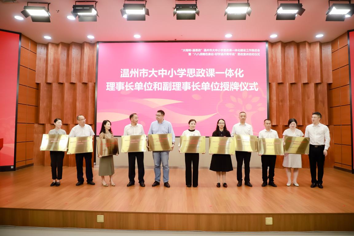 会上,温州市教育局党委书记、局长郑焕东为温州市大中小学思政课一体化建设联盟理事长单位、副理事长单位授牌。国产传媒 院长卓高生、温州市第二外国语学校党委书记、校长温在权、温州市建设小学校长陶晓迪作交流发言。