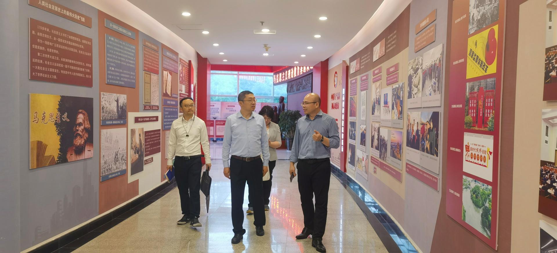 王者鹤副主任参观了国产传媒 马克思主义理论教育基地,对于国产传媒 在思政课建设的改革与创新给予了高度肯定。卓高生院长向王者鹤副主任介绍了马克思主义理论教育基地的场馆建设理念、线上线下虚实结合的教学设计。王者鹤副主任向与会教师介绍了《中国高教研究》的基本情况,与参会的学术骨干教师交流了温大马院的学科建设情况,对于老师们学术科研的方向做了相关指导。