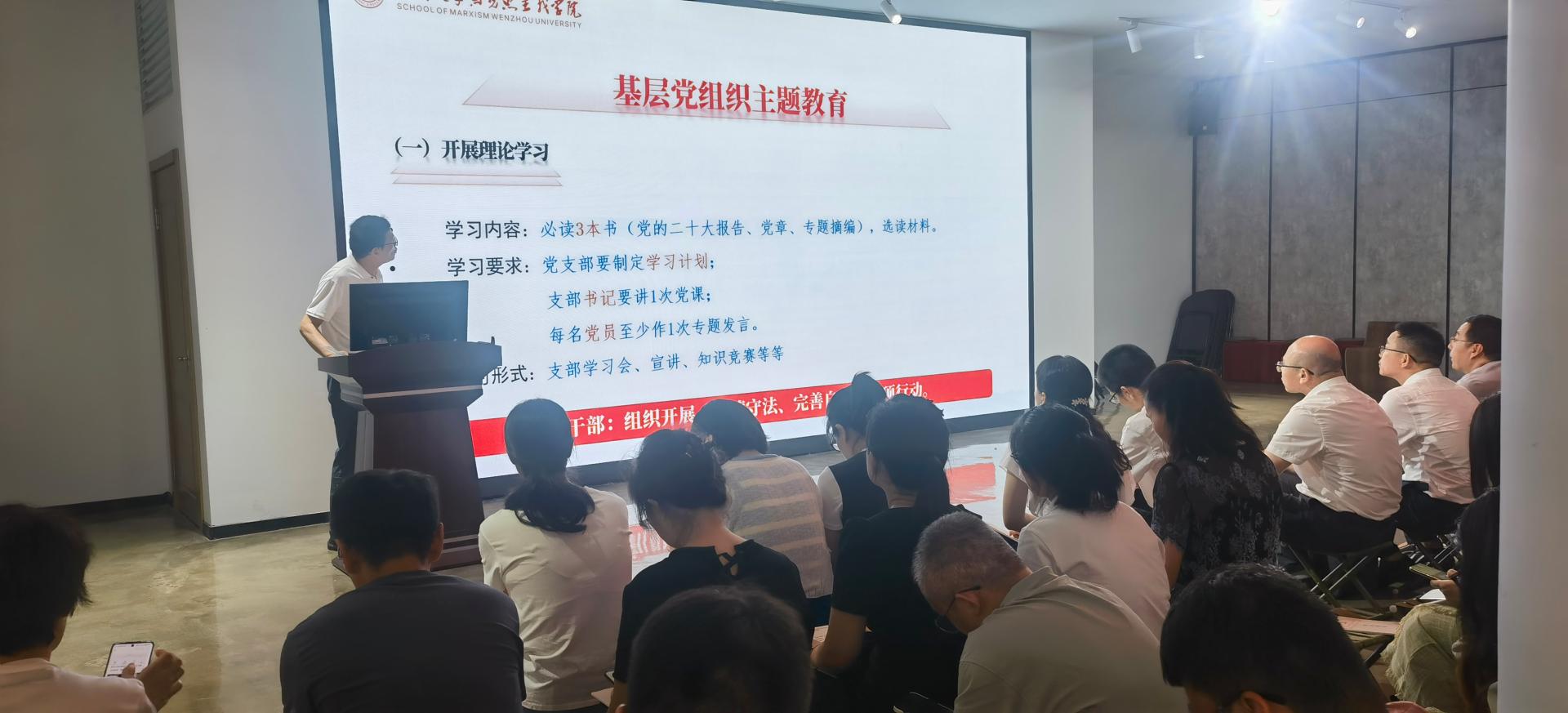 王柏民书记作动员讲话。他带领师生党员学习了习近平总书记在学习贯彻习近平新时代中国特色社会主义思想主题教育工作会议上的重要讲话精神,介绍了学校主题教育的概况和学院主题教育具体方案,解读了学院领导班子及成员、党支部及党员的主题教育要求和任务。他强调,全体党员要深刻认识主题教育重大意义,准确把握主题教育目标任务要求,强化责任落实和统筹兼顾,结合学院高质量发展面临的重点任务和存在的问题短板,坚持学思用贯通、知信行统一,在以学铸魂、以学增智、以学正风、以学促干方面争做标兵,确保主题教育取得实实在在的成效。