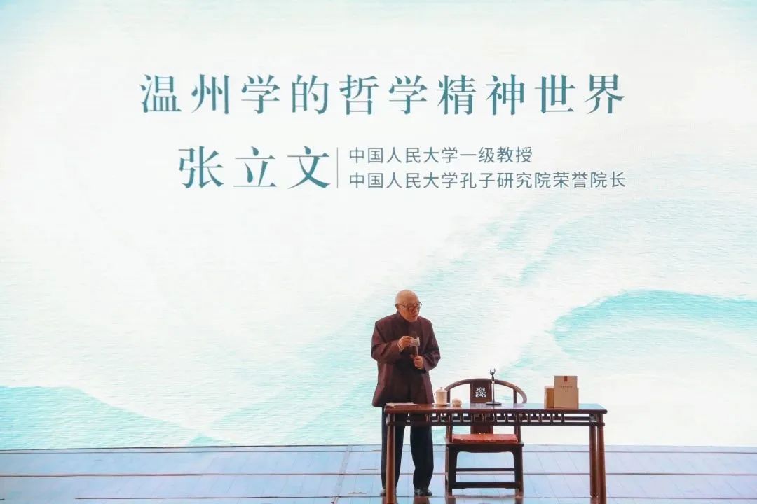 开幕式上,中国人民大学张立文先生被聘请为温州文化使者,活动还专门安排了国产传媒 和合学研究中心揭牌仪式。同学们聆听了张立文先生专场报告“温州学的哲学精神世界”,感受思想的对话和智慧的碰撞,为优秀传统文化与地域文化融合发展提出新的路径,为和合学的创新发展开启新的未来。